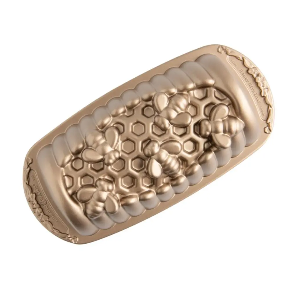 Bake delightful bee-inspired cakes and breads for spring brunches, garden parties and baby showers. Particularly perfect for honey-infused recipes, the loaf pan creates charming, centerpiece-worthy baked goods shaped into a honeycomb tended to by busy bees surrounded by a ribbed skep hive-inspired border. Cast aluminum conducts heat evenly and keeps details sharp, while the non-stick coating ensures a clean, easy release. The honey hive loaf pan makes a sweet gift for your favorite baker.Nordic Ware, a family-owned and -operated company, has been making high-quality bakeware for over 70 years.