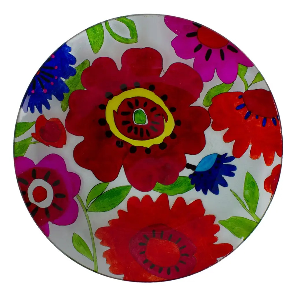 Northlight 18” Red And Blue Summer Flowers Hand Painted Glass Outdoor Patio Birdbath