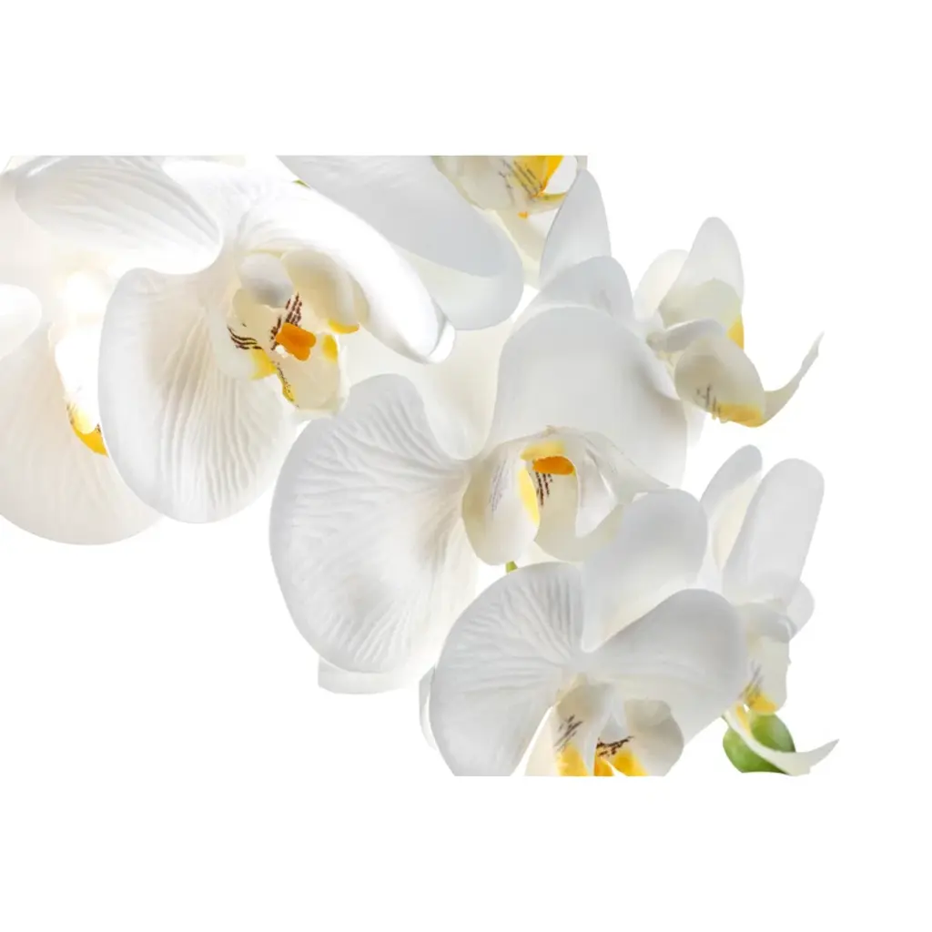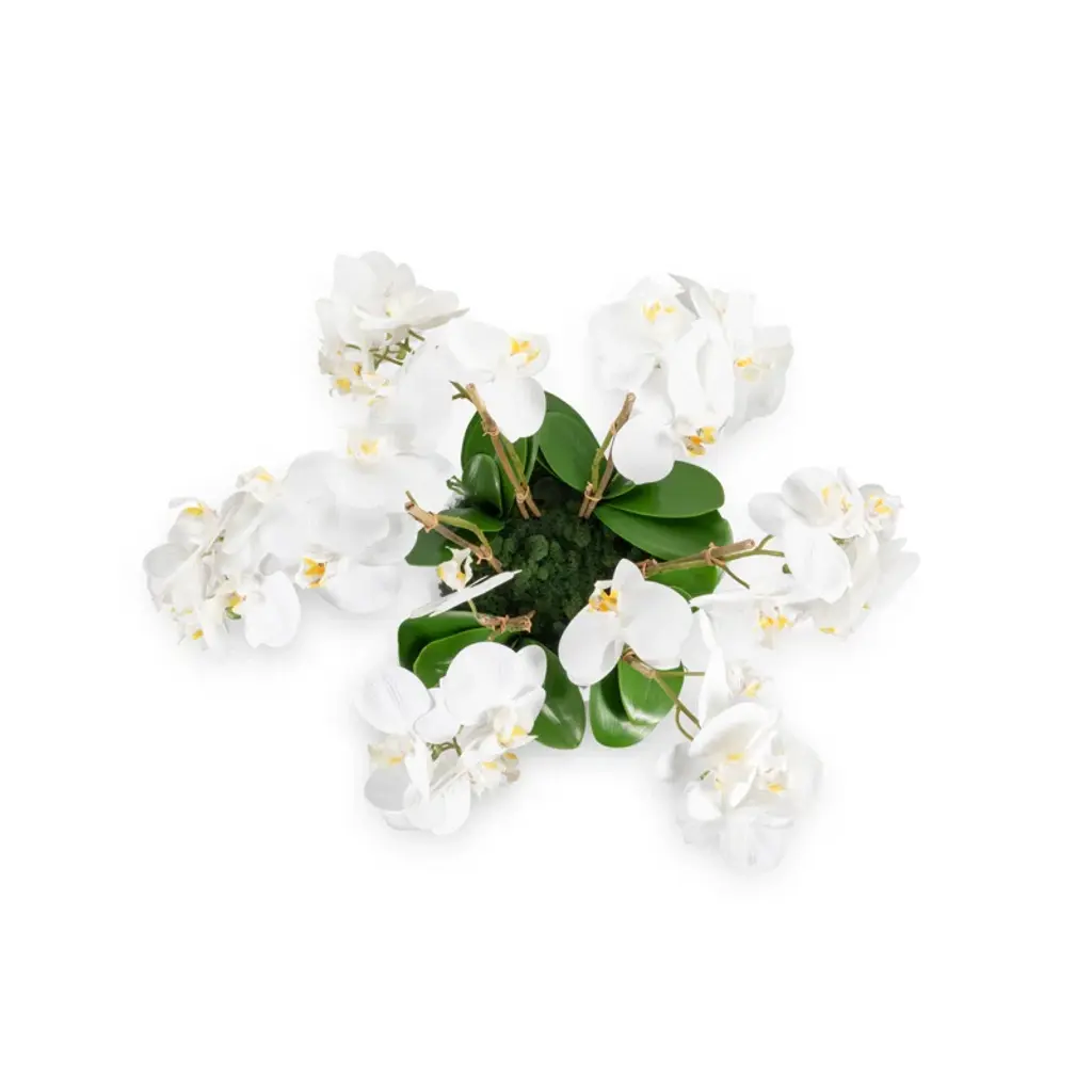 Make a statement with this stunning orchid centerpiece! Featuring gorgeous, lifelike orchids set in a contrasting black ceramic pot, it's the perfect way to add a pop of color to your space. With no maintenance required aside from an occasional dusting, you can enjoy the look of real orchids without the worry or hassle of upkeep.