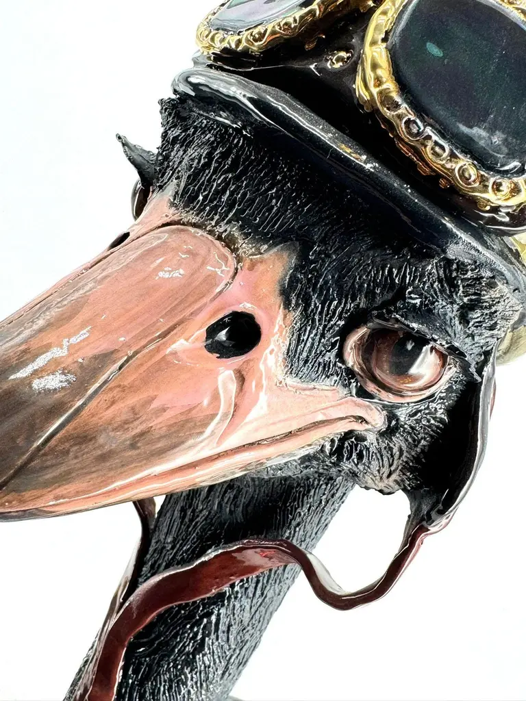 Ostrich Aviator, Centerpiece Sculpted Completely Handmade Without Mold, 2024