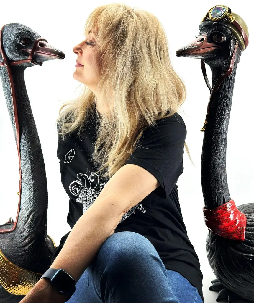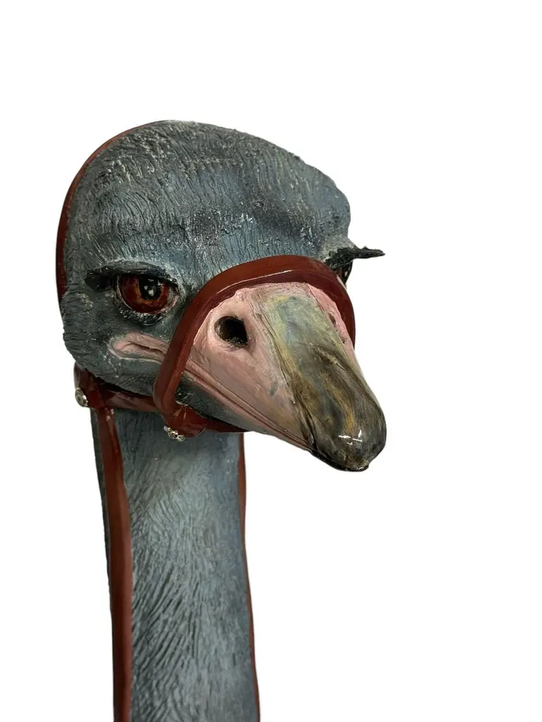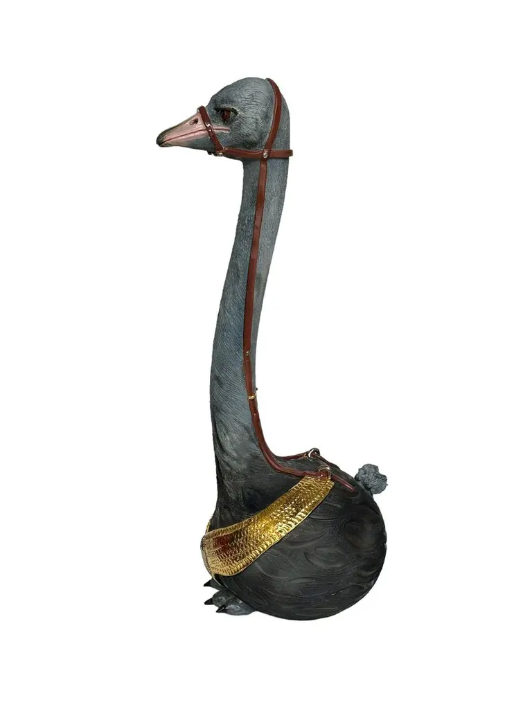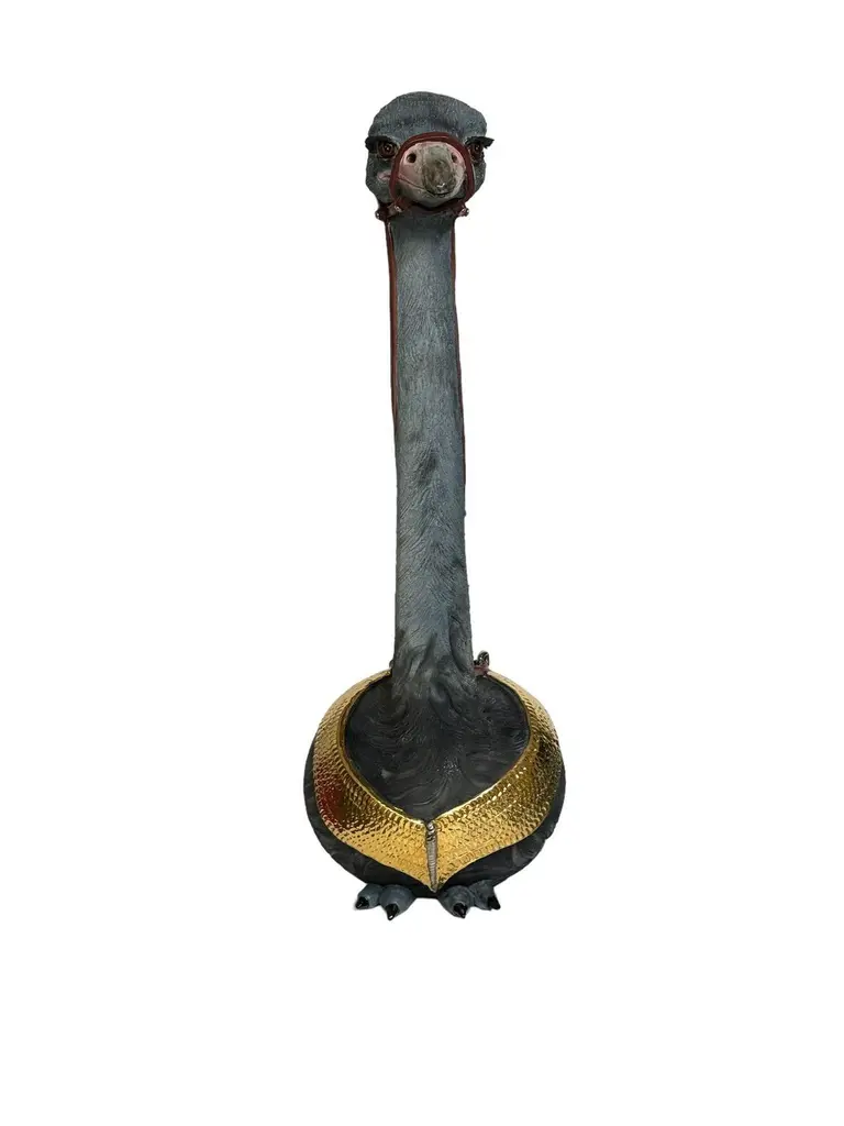 Ostrich Ceramic Centerpiece, Gold Details Completely Handmade Without Mold, 2024