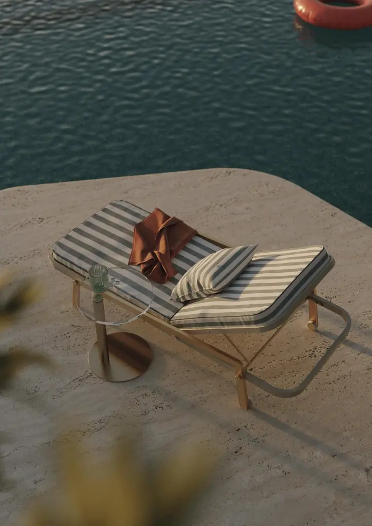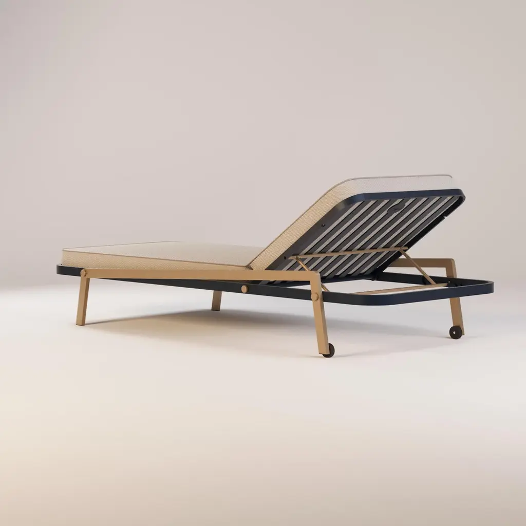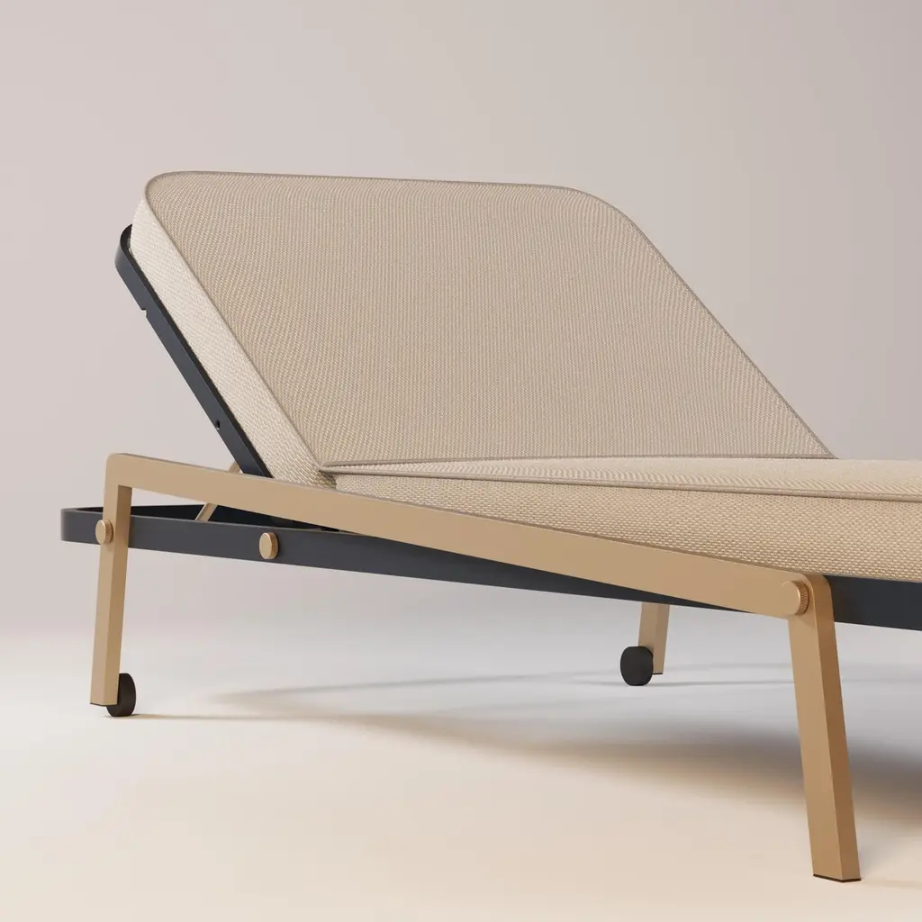 Ribbon Outdoor Sunbed Designed with premium materials for unmatched quality and durability, the Ribbon Sunbed combines functionality and elegance, making it a true statement of elegance and innovation. Its distinctive ribbon-shaped frame and contemporary design make it a centerpiece in any outdoor setting. Featuring a soft cushion and an adjustable headrest, it ensures exceptional comfort for lounging, sunbathing, or unwinding outdoors.The whole design of this relaxing outdoor sunbed was developed according to the following structure: -Structure: Aluminum;-Upholstery: Acrylic fabric;-Pipping: Outdoor leather;All Myface materials are from premium suppliers, engineered to offer the best performance possible outdoors.Water, Mold, Mildew, UV and Fading resistance are some of the characteristics that you can expect from both materials, that are available in a wide array of colors and patterns.