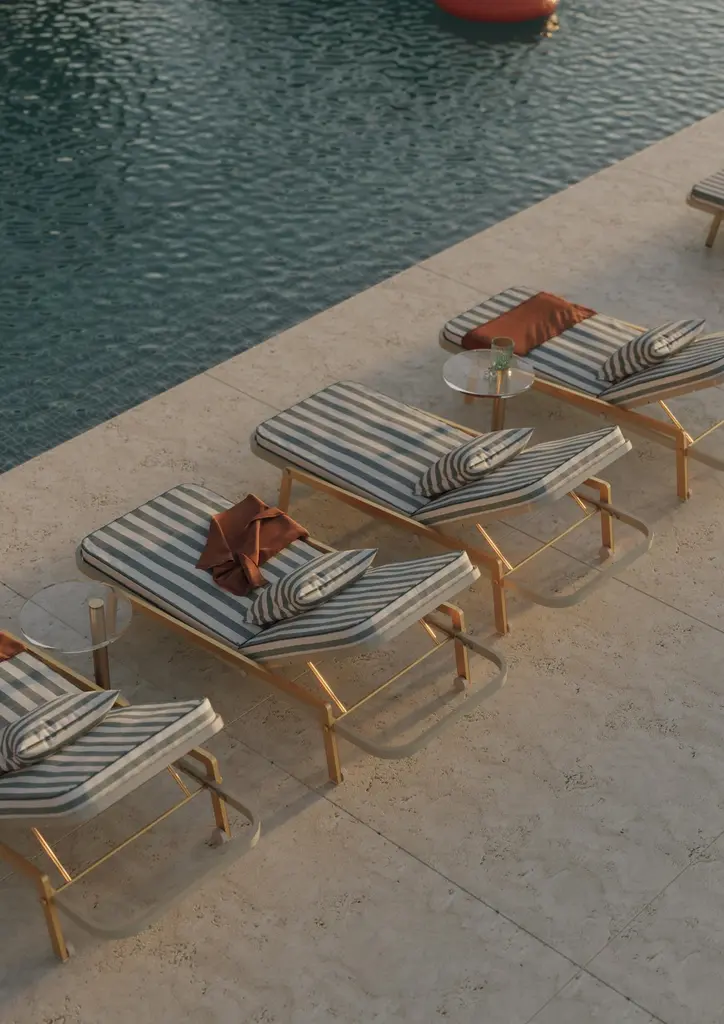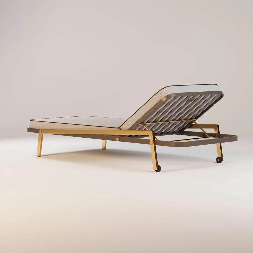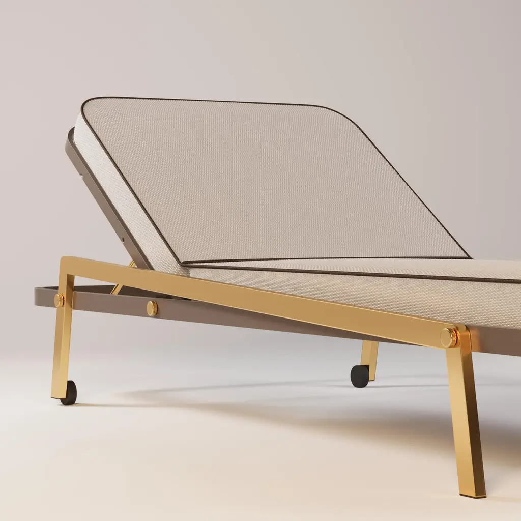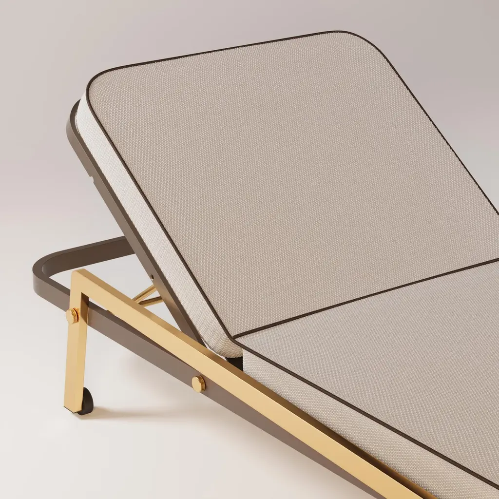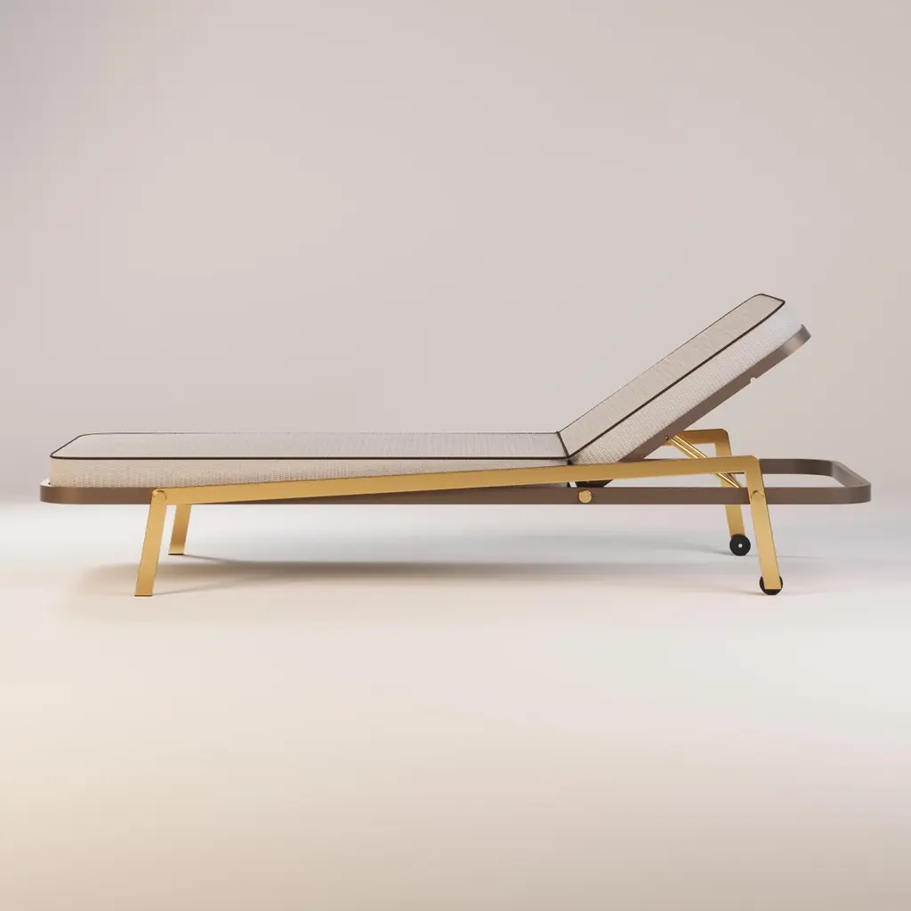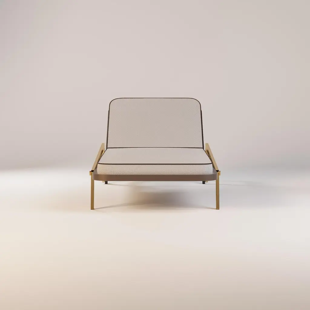 Ribbon Outdoor Sunbed Designed with premium materials for unmatched quality and durability, the Ribbon Sunbed combines functionality and elegance, making it a true statement of elegance and innovation. Its distinctive ribbon-shaped frame and contemporary design make it a centerpiece in any outdoor setting. Featuring a soft cushion and an adjustable headrest, it ensures exceptional comfort for lounging, sunbathing, or unwinding outdoors.The whole design of this relaxing outdoor sunbed was developed according to the following structure: -Structure: Aluminum;-Upholstery: Acrylic fabric;-Pipping: Outdoor leather;All Myface materials are from premium suppliers, engineered to offer the best performance possible outdoors.Water, Mold, Mildew, UV and Fading resistance are some of the characteristics that you can expect from both materials, that are available in a wide array of colors and patterns.