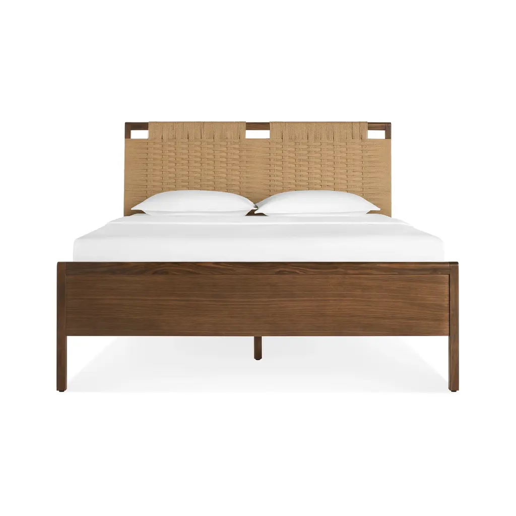 The Over Under Bed from Blu Dot is a dream-like fusion of warm wood and natural texture, designed to be a serene centerpiece for your bedroom. Crafted with a gently curved wood frame, its defining feature is the handwoven natural cord headboard, which adds a layer of soft, tactile dimension and visual lightness. This beautifully balanced design creates an inviting and sophisticated retreat, proving that good sleep and great style go hand-in-hand. Highlights