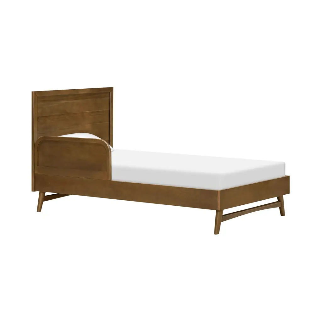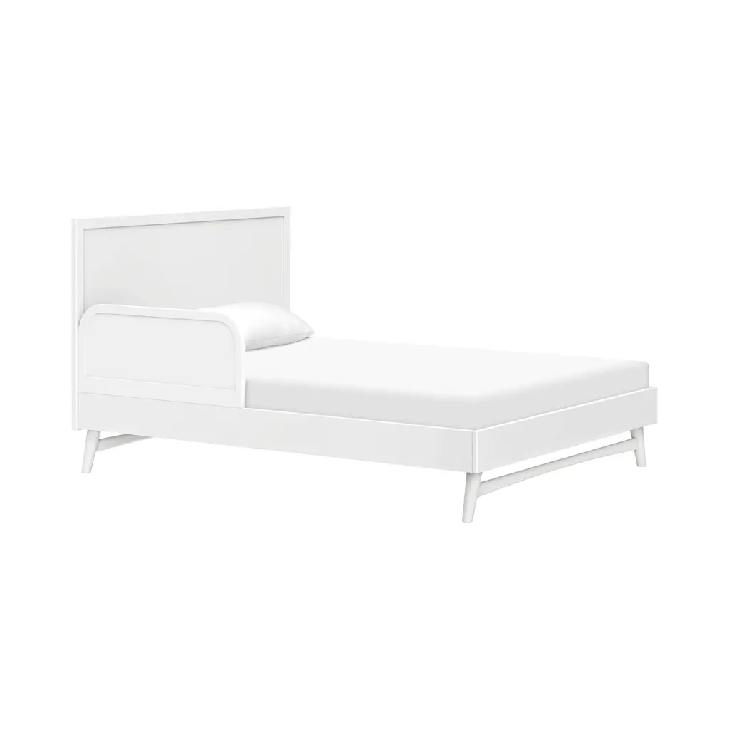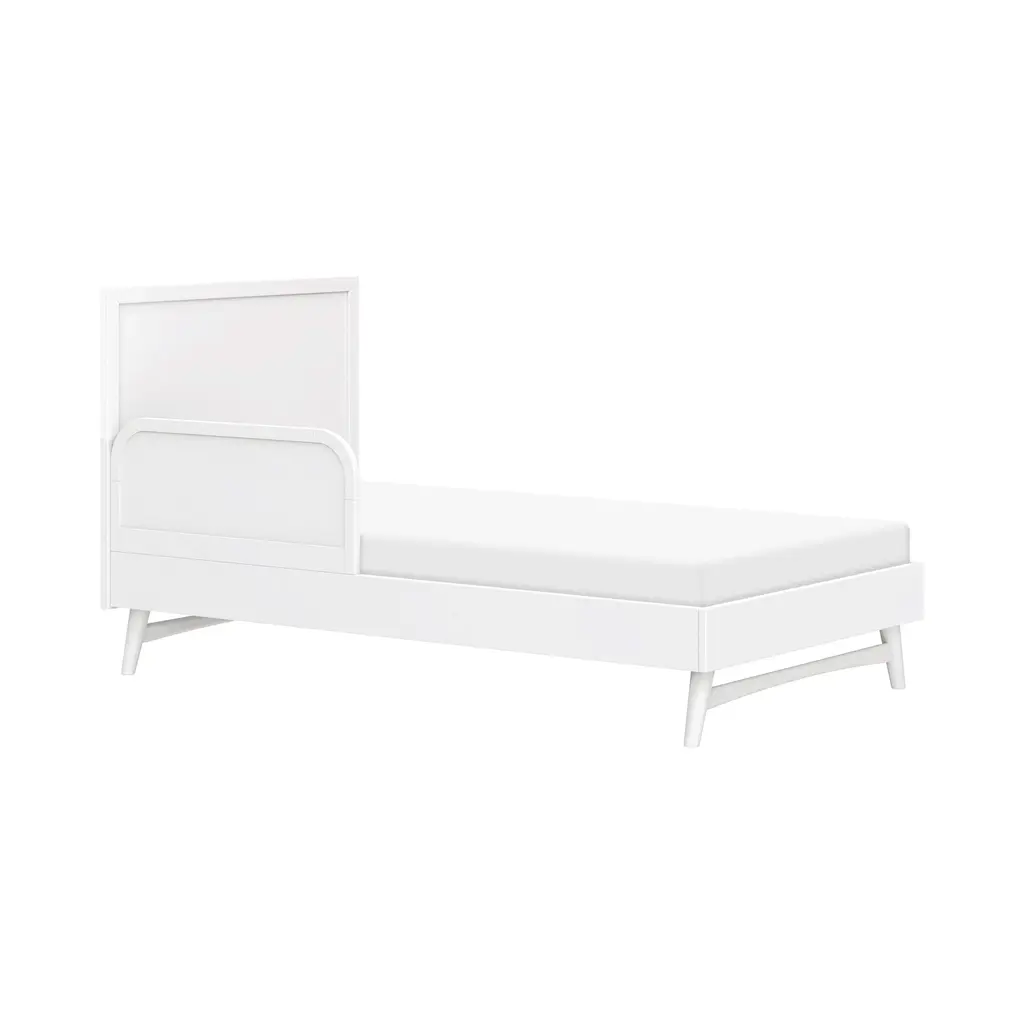 With its clean lines and mid-century cool, the Palma Bed from Babyletto is a stylish and functional centerpiece for a growing kid's room. This beautiful bed features gently tapered legs and a low-profile silhouette, making it easy for little ones to climb in and out on their own. Consciously crafted from sustainably sourced pine wood with a non-toxic finish, it's GREENGUARD GOLD Certified to support cleaner indoor air. A fusion of thoughtful design and safety, it’s a beautiful foundation for a healthy bedroom. Highlights: