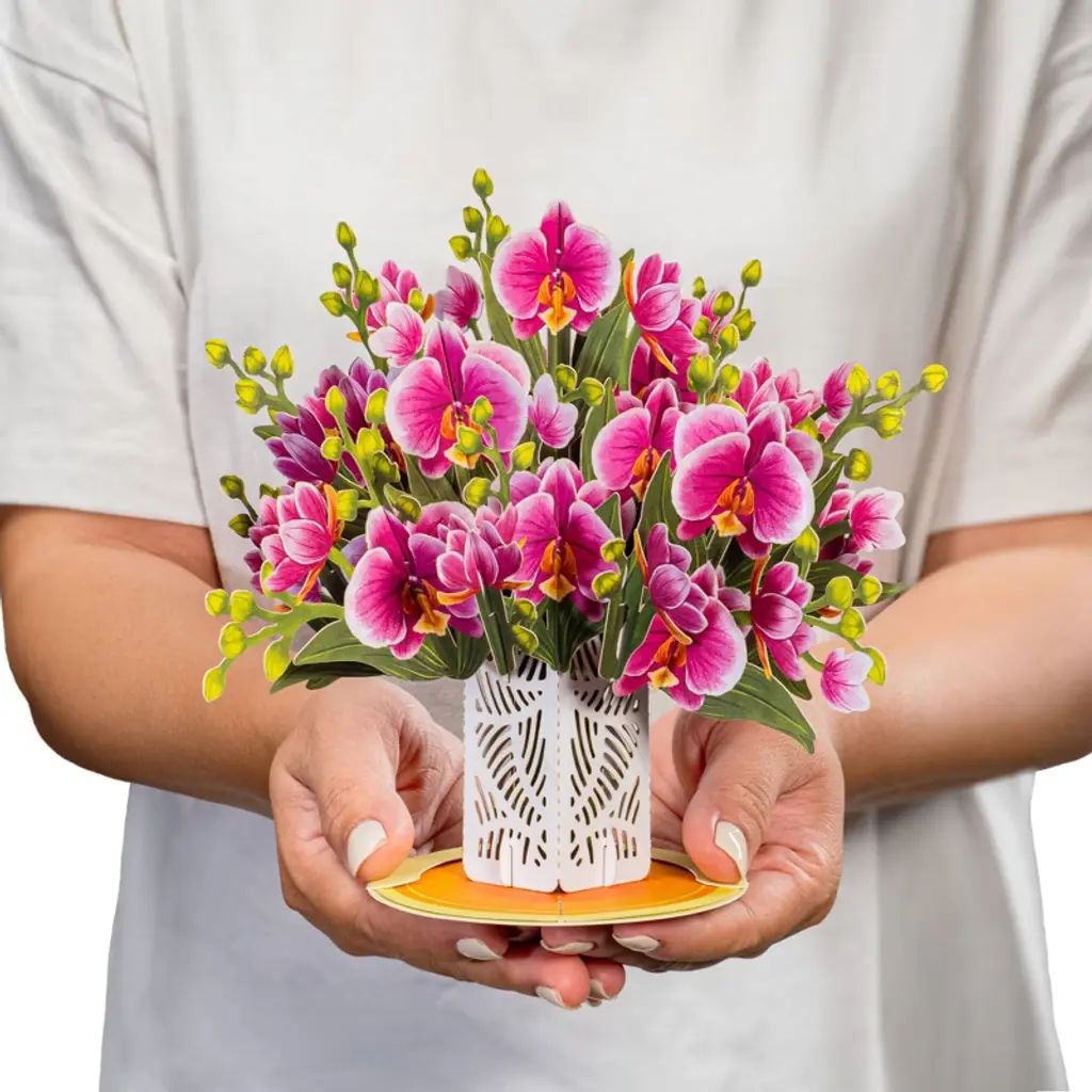 Paper Love 3D Pop Up Flower Bouquet Card, With Orchids Forever Flowers Keepsake, For All Occasion - Oversized 10" X 7" Cards