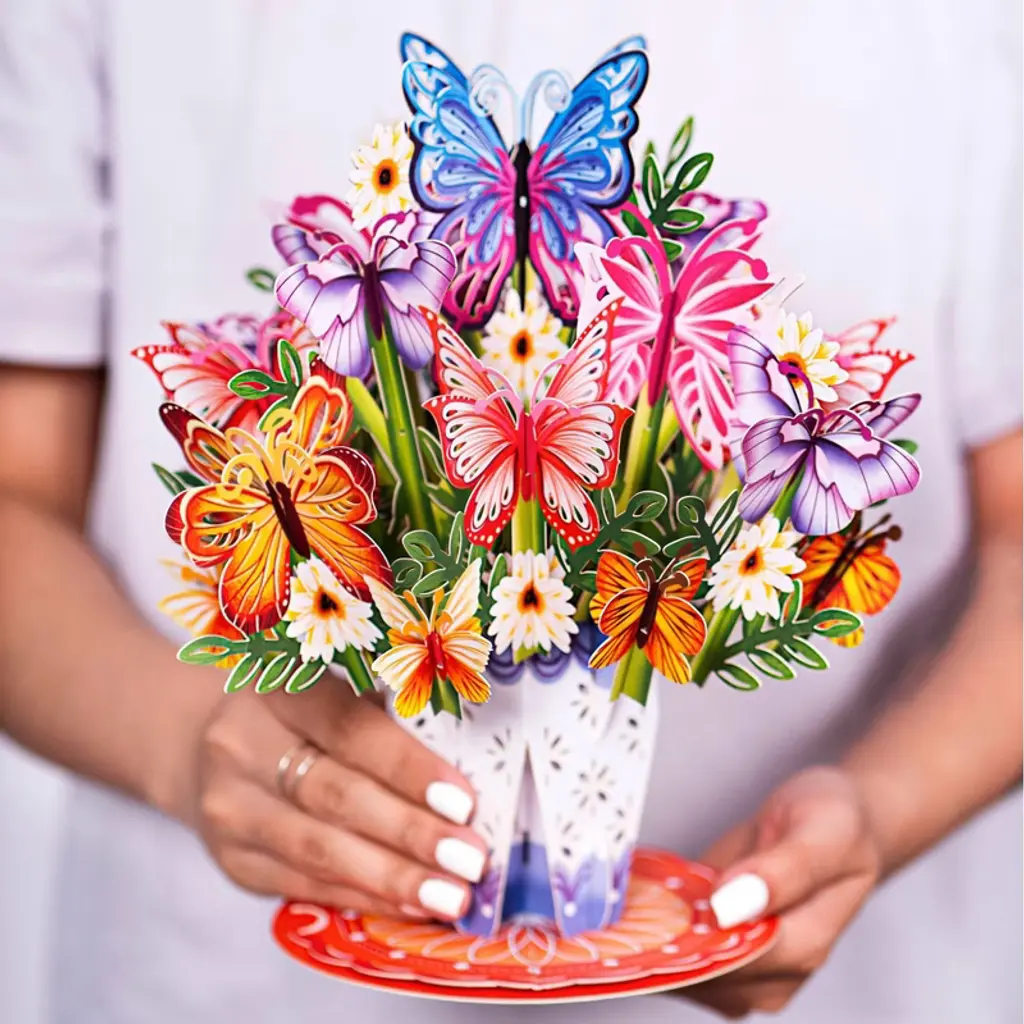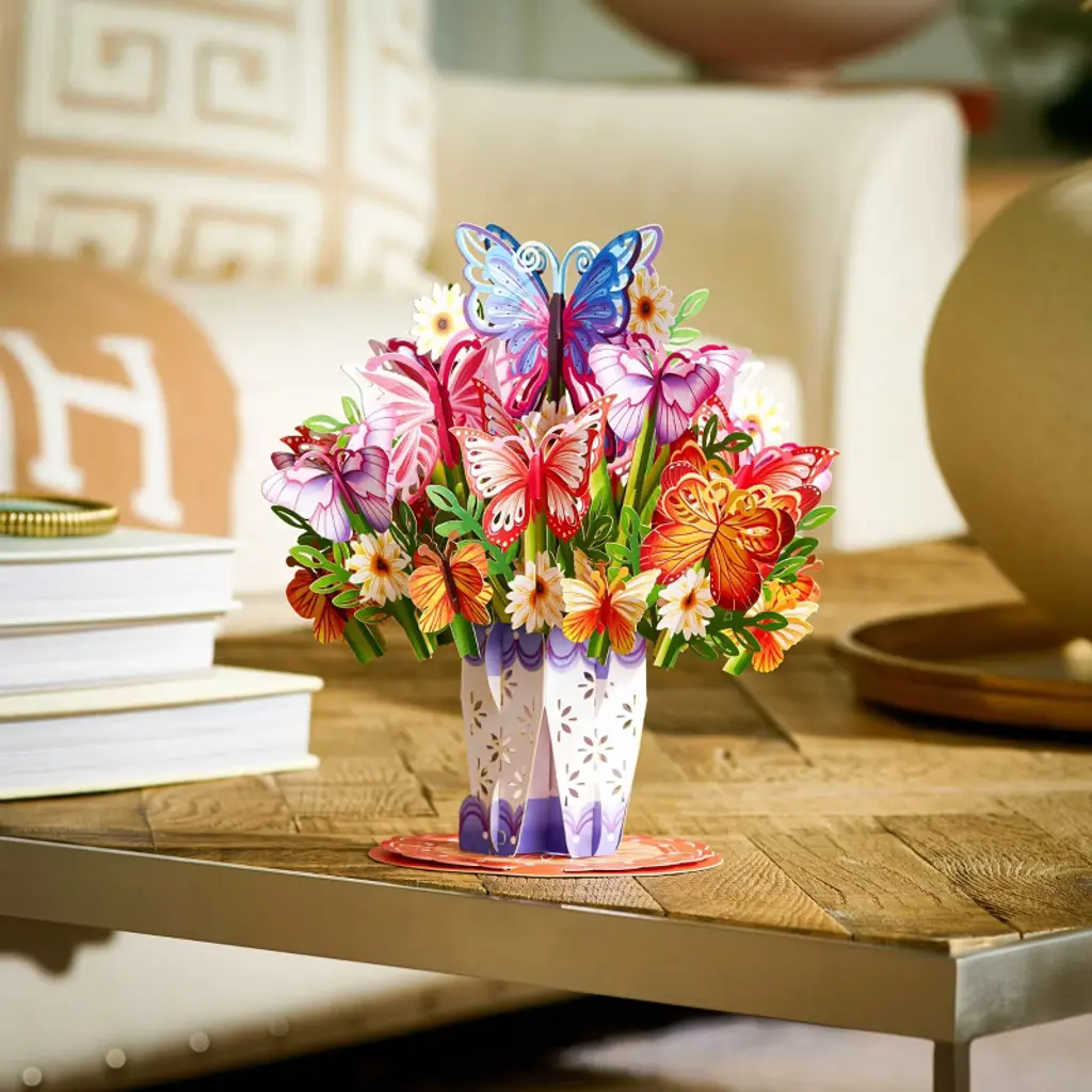 Celebrate every occasion with a gift that blooms forever. Paper Love’s HugePop Butterfly pop-up flower bouquet is a lasting alternative to real flowers that never wilt. Bursting with intricate laser-cut details and vibrant colors, this exquisite 10"×14" paper bouquet makes a stunning surprise for birthdays, Valentine’s Day, Mother’s Day, or any heartfelt moment. When opened, the jumbo bouquet dramatically pops up, creating a romantic and unforgettable reveal. Its detachable design allows it to be displayed as a beautiful floral centerpiece or cherished as a card. Thoughtful, lasting, and full of love—this is more than a card, it’s a keepsake.