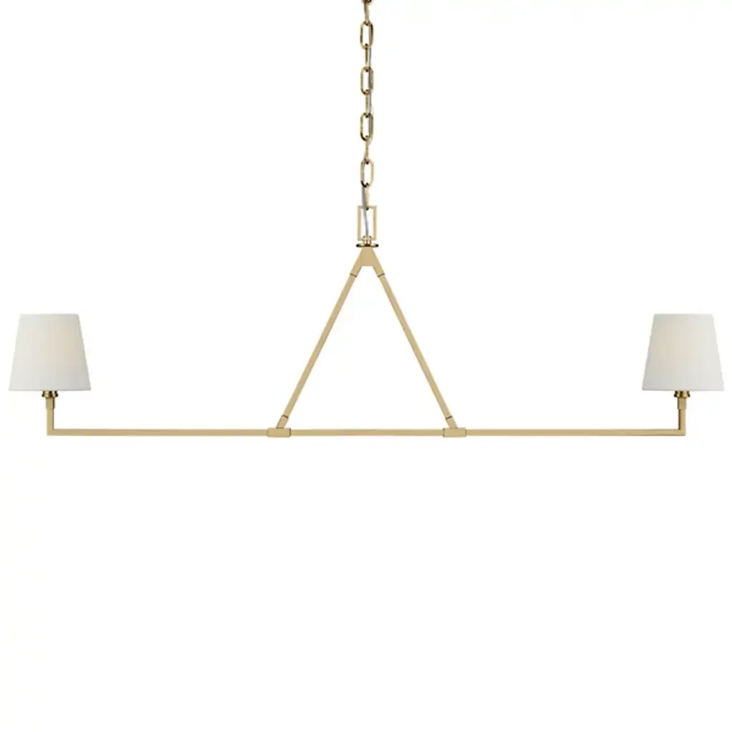 The Perth Linear Suspension from Visual Comfort Studio combines classic elegance with modern design, serving as a versatile centerpiece for any space. Crafted from durable steel, its sleek frame features multiple arms, each adorned with a crisp white linen shade that gently diffuses light for a warm, inviting glow. This fixture complements traditional and contemporary decor styles and is ideal for dining rooms, living areas, or entryways. Its timeless design enhances any room with a perfect style and functional illumination blend.