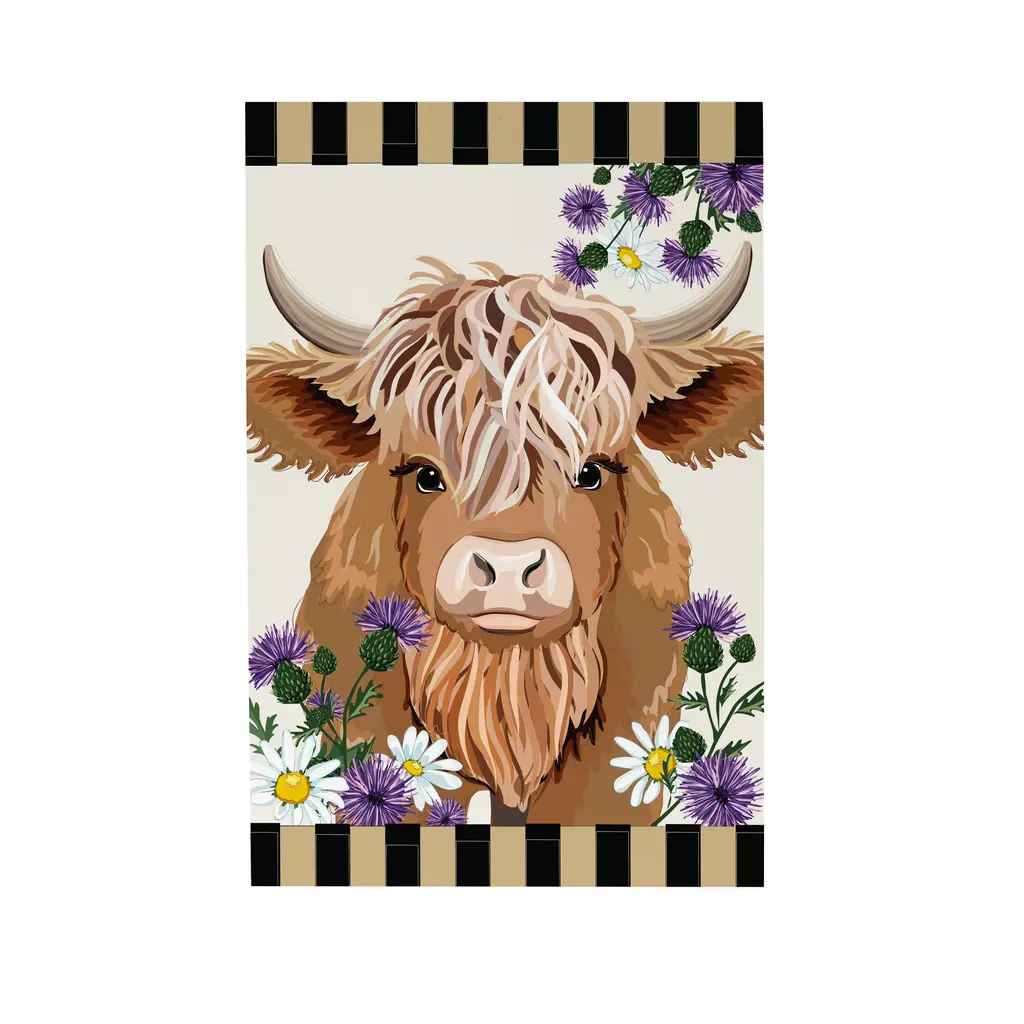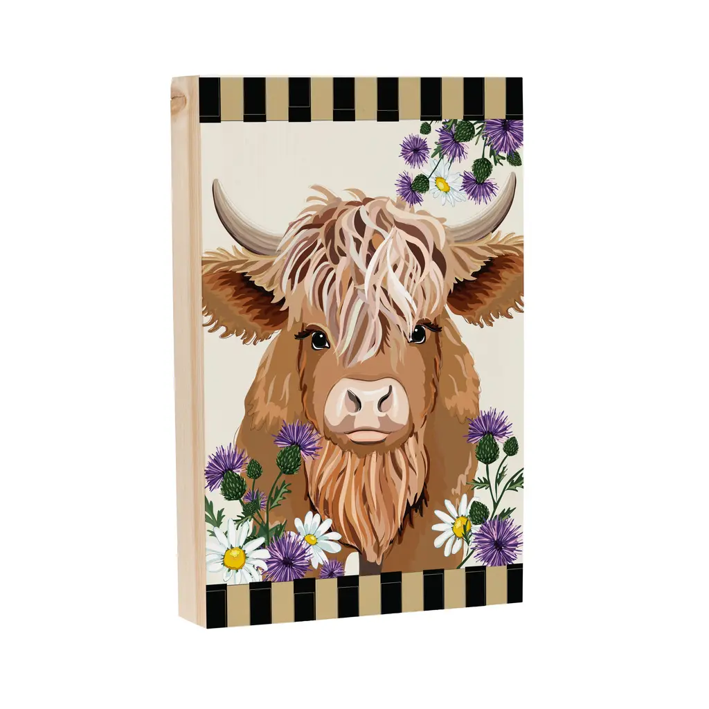Petal & Plow Highland Cow Sign Wood Block, 8"l X 12"h