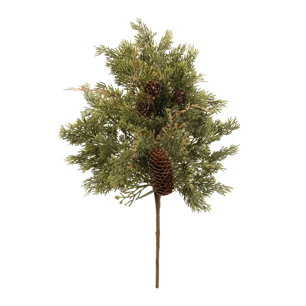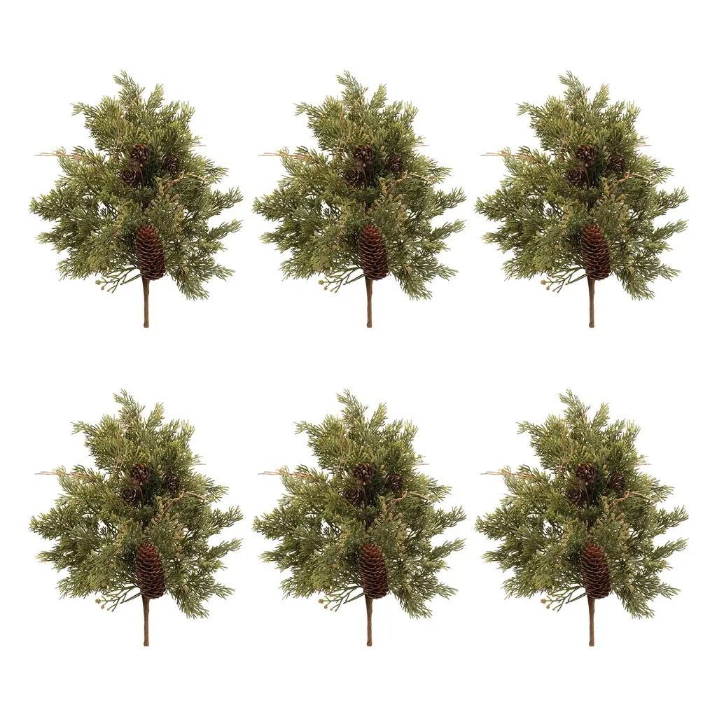 Bring the beauty of nature into your holiday décor with the Pine & Pinecone Spray. Designed with lush, variegated pine branches and accented with natural-looking pinecones, this spray adds a rustic, festive touch to any seasonal arrangement. The wired stem and branches allow for effortless styling, making it a perfect addition to wreaths, garlands, centerpieces, or porch pots. Sold in a set of 6, these sprays provide a full and natural look to enhance your winter displays.