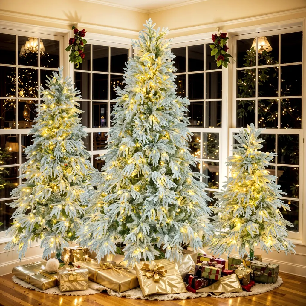 Transform your home, office, or holiday event space into a winter wonderland with this Pre-Lit Spruce Snow Flocked Christmas Tree Set. This enchanting set includes three beautifully crafted trees—4FT, 6FT, and 7.5FT—each adorned with lush snow-flocked branches that create a magical ambiance perfect for the holiday season. Key Features: Pre-Lit Convenience: Each tree comes pre-lit with a total of 800 warm-yellow and colorful LED lights, offering a bright and cheerful glow to brighten any space. Customizable Lighting: Featuring 8 flashing modes, you can easily switch between different lighting effects to match your festive mood or decor theme. Hinged Design: The hinged branches make assembly and disassembly a breeze, allowing you to set up your holiday display quickly and easily. Realistic Snow-Flocked Appearance: The combination of green and white tips mimics the look of freshly fallen snow, adding an elegant touch to your holiday decorations. Dimensions: 4FT Tree: Perfect for smaller spaces, with a diameter of 37.4 inches. 6FT Tree: Ideal for standard rooms, with a diameter of 44.1 inches. 7.5FT Tree: A stunning centerpiece for larger areas, with a diameter of 55.1 inches. Versatile Holiday Décor This Pre-Lit Spruce Snow Flocked Christmas Tree Set is perfect for decorating your living room, office, or event space. With its festive lighting and stunning appearance, this set is sure to become a cherished part of your holiday traditions. Create a festive atmosphere and make your celebrations unforgettable with this beautiful tree set!