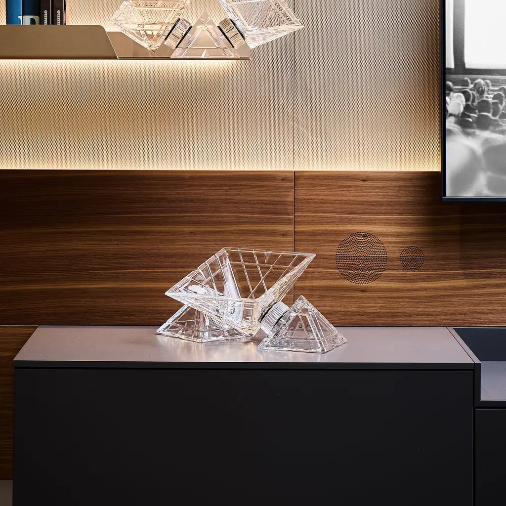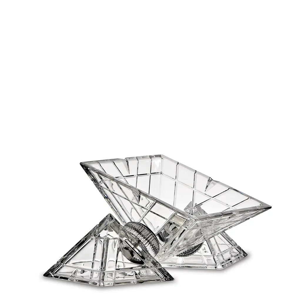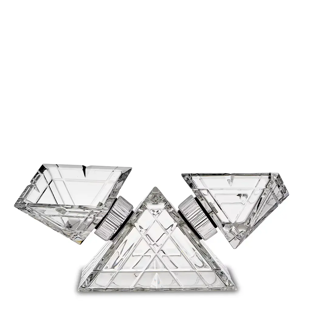 The origin of the pyramid symbolizes a ladder, the ascent to heaven. This is the idea that Mario Cioni & C wants to transmit with this collection of centerpieces: enrich any space with ethereal beauty. The base of the Pyramidion is a square, a symbol of perfection, immutability, and stability. The centerpieces of this collection want therefore be an expression of how the skillful hands of our masters melt with crystal with over 24% of PbO's beauty to create shapes that look divine.
