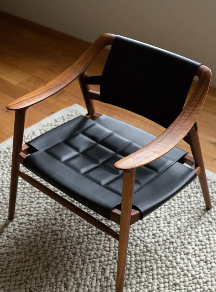 Rastad & Relling 'Bambi' 56/2 Lounge Chair in Solid Walnut for Fjordfiesta. Designed in 1956. New, current production.Lounge chair in solid walnut or oak with a seat and back in embroidered leather.The Bambi Lounge chair – an epitome of Norwegian design and the centerpiece of the Bambi Line, was originally designed by the renowned furniture design company Rastad & Relling in the mid 50’s.The Bambi Lounge chair being part of the Bambi Line consisting of an array of chairs, is wider, deeper and more expressive than the other chairs in the Bambi family. Although the chair has a design that meets the eye as bold, the construction and design of the chair will give you a sense of airiness and ergonomic support when seated.About the Bambi lounge chairThe Bambi Lounge chair being part of the Bambi Line consisting of an array of chairs, is wider, deeper and more expressive than the other chairs in the Bambi family. Although the chair has a design that meets the eye as bold, the construction and design of the chair will give you a sense of airiness and ergonomic support when seated.So how did the designers manage to create a piece of furniture so bold yet so delicate? We have to travel back in time to the mid 1950’s and pay a visit to the acclaimed Norwegian furniture design company Rastad & Relling, to understand why.Rastad & Relling furniture design company was started by Adolf Relling and Rolf Rastad in Oslo in 1943. Relling, originating from the West coast of Norway, the Sunnmøre region known for its innovative furniture design and production for centuries, met Rolf Rastad from Oslo and they decided to start their business venture together. Rastad and Relling became pioneers in the furniture industry in the years following the second World War. By focusing on onboarding students from the Oslo school of Design and Arts, they drove innovation and acted as an incubator for up and coming furniture designers.Over the years, Rastad and Relling collaborated with multiple design companies but the collaboration with Gustav Bahus was especially successful, resulting in the now re-launched Bambi Lounge chairs, among others. We’ve learned that fruitful collaboration is the key to continuous success, that is why we decided to work together with Fabio Carlesi at Utopia Retro Modern in Oslo when re-launching the Bambi Lounge chairs.Fabio’s Italian roots combined with his vast knowledge about Norwegian design furniture, has resulted in access to some of the best specialized furniture producers in Italy, ensuring a high quality end product while maintaining the original design. Luckily for us, Fabio’s brother who is a furniture designer, is keeping an eye on the production in Italy to ensure nothing is lost in translation.Since we started Fjordfiesta in 2004, we have seen it as our task to bring out and highlight the best from our common design heritage, a task that we feel has been partly neglected in Norway. The history behind Rastad and Relling was important to us when we decided to re-launch the Bambi Lounge chair models 56/1 and 56/2, 70 years after its creation.– Bambi is one of Norway’s foremost design products, regardless of era. It’s a fantastic piece of timeless design, just the way we like it at Fjordfiesta, says CEO Pål Lunder.