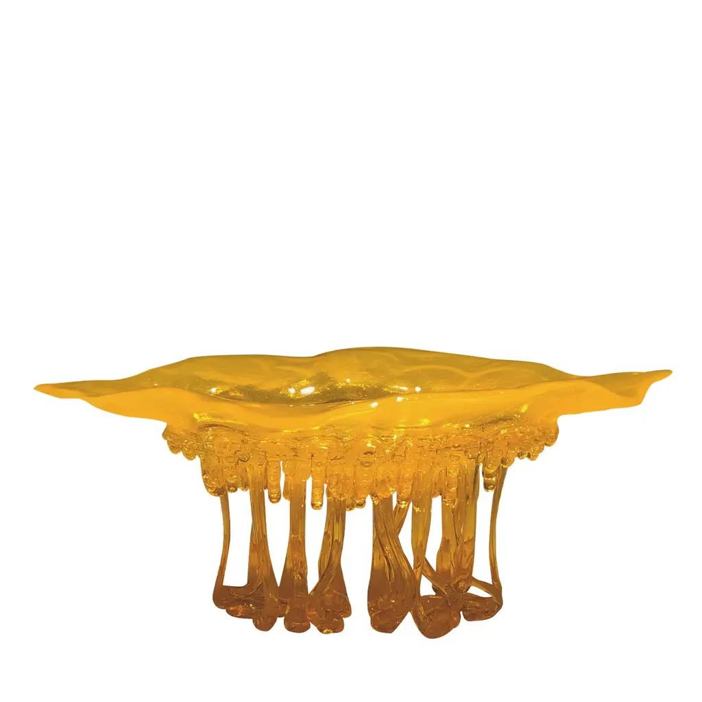 The jellyfish is the main element of the Mosche Bianche's "Medusa" Collection: fluid, delicate but also dangerous and deadly. It represents the water, the circle of life. Glass fusing basically means building a new solid-state glass, assembling different pieces that, in contact with heat, varying from 800 ° C to 850 ° C, become so fluid that they join together deeply and irreversibly.The cooling is very slow in order to allow the total reorganization and recovery of the molecular stability that the material possessedbefore being heated. Glass fusing allows, using colored compounds (enamels, oxides) to produce polychromeobjects.The work of the artist uses two main tools: heat and the force of gravity. The result depends on the degree of communication between the artist, the glass and the oven he uses.This handmade masterpiece is a unique piece, made in Italy.