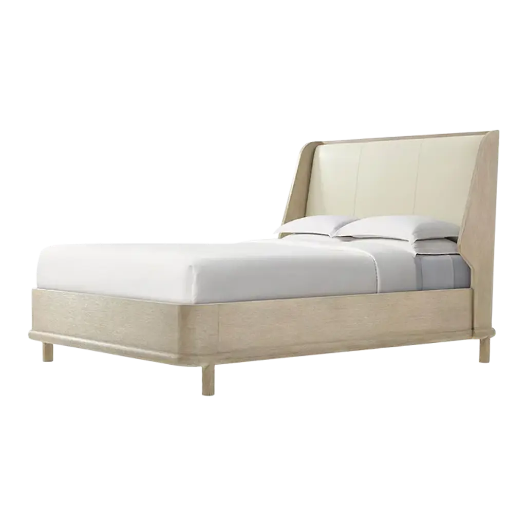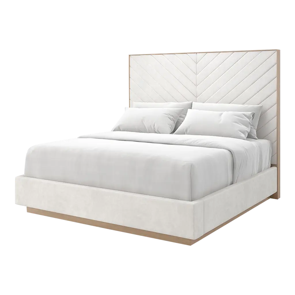 Introducing the Renascence Upholstered Bed, the epitome of modern urban elegance and refined luxury. With its exquisite pearlized white finish and stunning design, this bed transforms any bedroom into a stylish sanctuary. The focal point of this extraordinary piece is its headboard and footboard, adorned with sumptuous crushed velvet upholstery. The rich texture and captivating sheen of the crushed velvet add a touch of opulence and sophistication to the overall aesthetic. Sink into its plush embrace as you unwind and indulge in ultimate comfort. Soft curves grace every inch of the Renascence bed, creating a harmonious blend of sleek lines and gentle contours. The curved edges add an elegant touch, evoking a sense of grace and tranquility that perfectly complements a modern interior. Crafted with meticulous attention to detail, this bed is not only a feast for the eyes but also offers exceptional durability. The sturdy construction ensures long-lasting support, while the high-quality materials guarantee a bed that will stand the test of time. As practicality meets style, the Renascence Upholstered Bed boasts a versatile design that effortlessly adapts to various decor styles. Whether you prefer a contemporary, transitional, or classic aesthetic, this bed seamlessly fits into any setting, becoming the centerpiece that ties the room together. Transform your bedroom into a haven of elegance with the Renascence Upholstered Bed. Its modern urban allure, pearlized white finish, and indulgent crushed velvet upholstery create a captivating atmosphere of refined luxury. Experience the perfect blend of comfort and style as you indulge in the soft curves and impeccable craftsmanship of this remarkable piece.