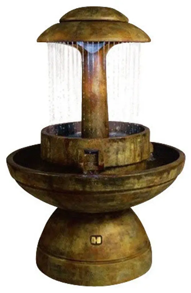 • Please Note: Our color chart is for example purposes only. Monitor settings and how the finish is applied to these outdoor water fountains can vary to what is shown in the color chart. Actual stone samples of each finish can be purchased to help you make your finish choice.The Ring of Diamonds Outdoor Water Fountain is a centerpiece of serenity and beauty of nature for your garden or outdoor space. This fountain brings tranquility through its flowing sounds and a feeling of being one with nature.The fountain is made from premium cast stone. Each fountain is individually handcrafted by the best artisans in the industry to last for generations of outdoor use. Skilled artisans using Old World techniques finish the fountain in your choice of an unparalleled selection of beautiful colors.Ring of Diamonds Outdoor Water Fountain features:Made in USA Made of cast stone to last a lifetimeIncludes one fountain pump Dimensions: 60" H x 39.5" DWeight: 725 lbs.Available in 21 finishesShown in Relic Nebbia• The finish/stain is hand applied and can vary from what is shown in the color sample.• • Each fountain is made to order and requires about 3-4 weeks for production and delivery.