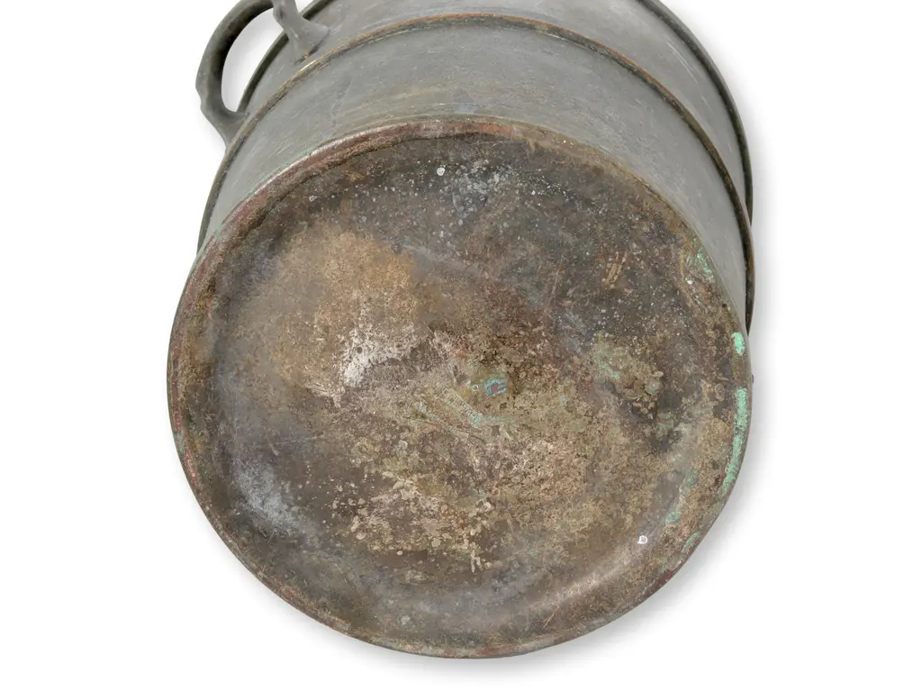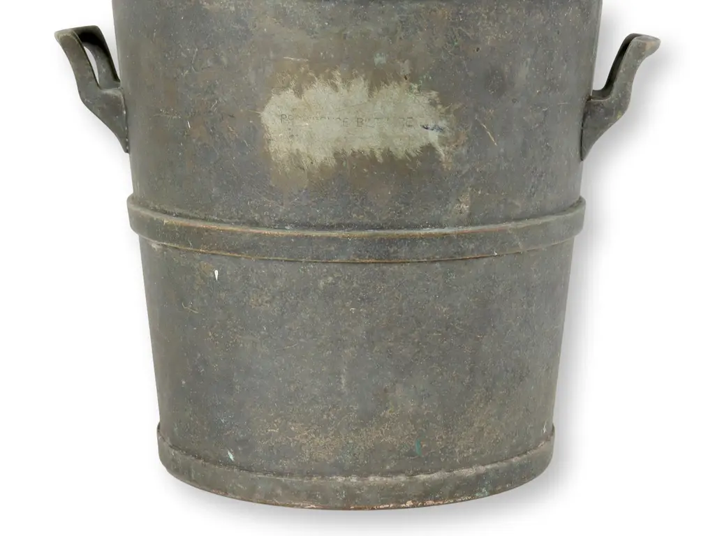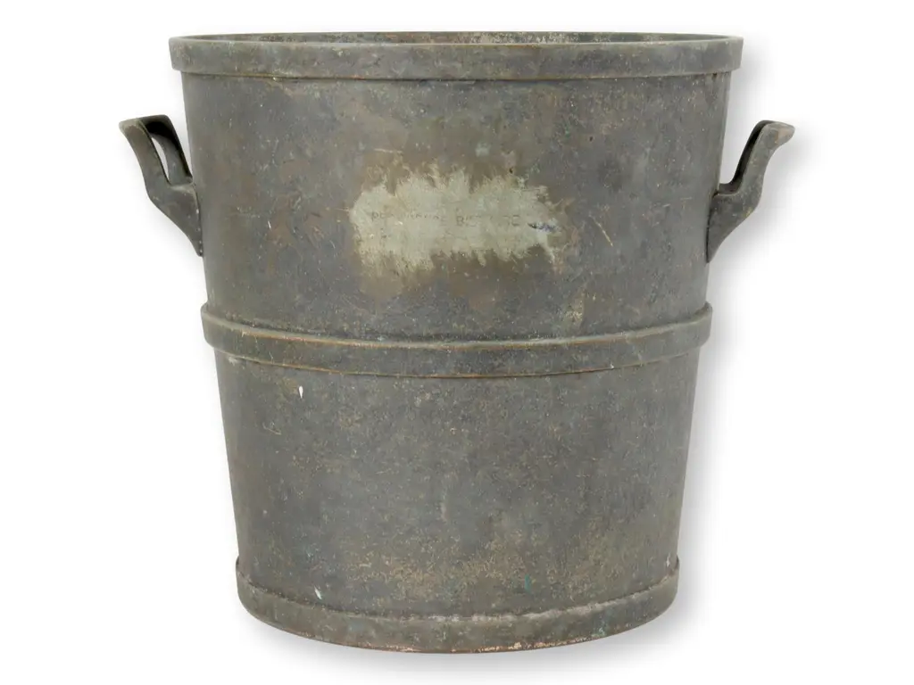 Enjoy a piece of history with this early 20th-century champagne bucket from the Biltmore Hotel in Providence, Rhode Island. Once silver-plated, its now heavily oxidized surface exudes a deeply rustic charm. The bucket proudly displays the Biltmore's name, adding to its authentic historical allure. Perfect for collectors or as a unique centerpiece, this champagne bucket is not just a vessel for chilling drinks, but a tangible piece of the hotel's legacy. Makers mark on underside.