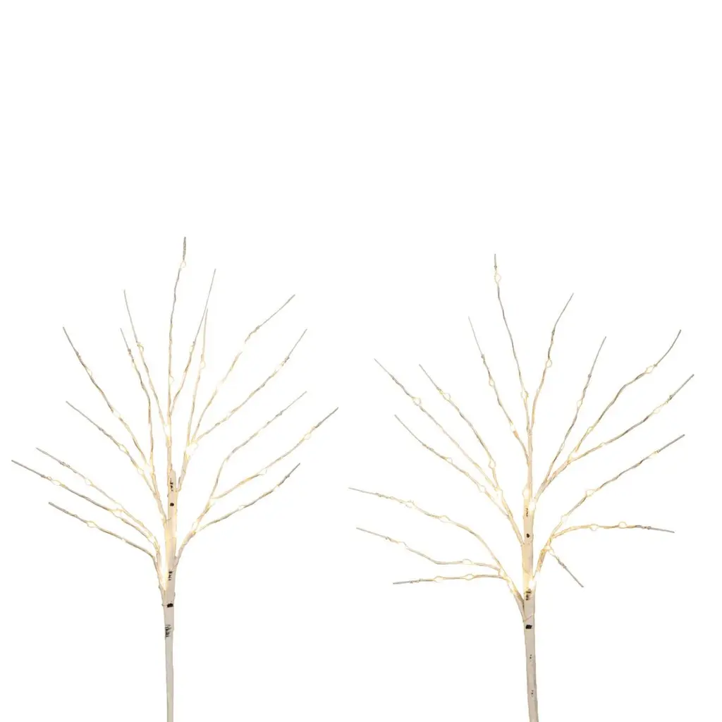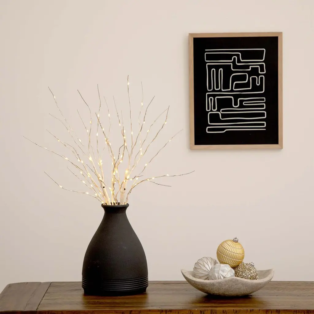 Elevate your indoor decor with the rustic winter charm of these artificial birch twig branches. Drawing inspiration from the soothing aesthetic appeal of genuine birch branches, each stem is crafted from durable, high-quality materials, ensuring they maintain their beauty year after year. Nestled among the lifelike branches are 80 warm white and energy-efficient LED lights, adding a warm and welcoming glow to any space. Perfect for a tall vase beside the Christmas tree, these stems also make a stunning addition to centerpieces, mantelpieces, or even displayed alone for a minimalist touch no matter the season. Despite their delicate appearance, these stems are designed for longevity and are easy to clean and store after use. You can even shape them a bit as you'd like. Standing at a versatile height of 24", they're not only ideal for the holiday season but for year-round use, bringing a touch of nature's beauty to your interior decor whenever you desire. Please note that batteries are not included. Experience the tranquility of a winter woodland from the comfort of your own home with these stunning illuminated birch twig stems.
