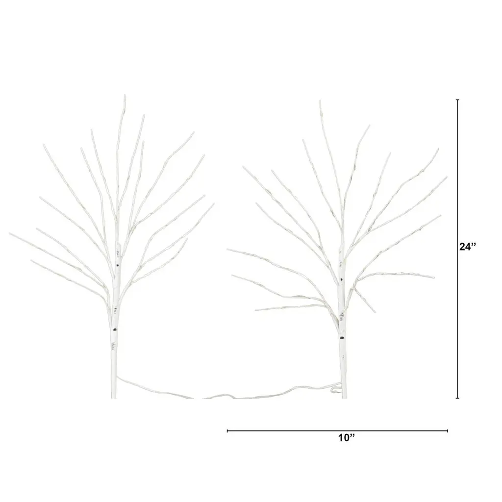 S/2 24in. Pre-lit Artificial White Birch Branches