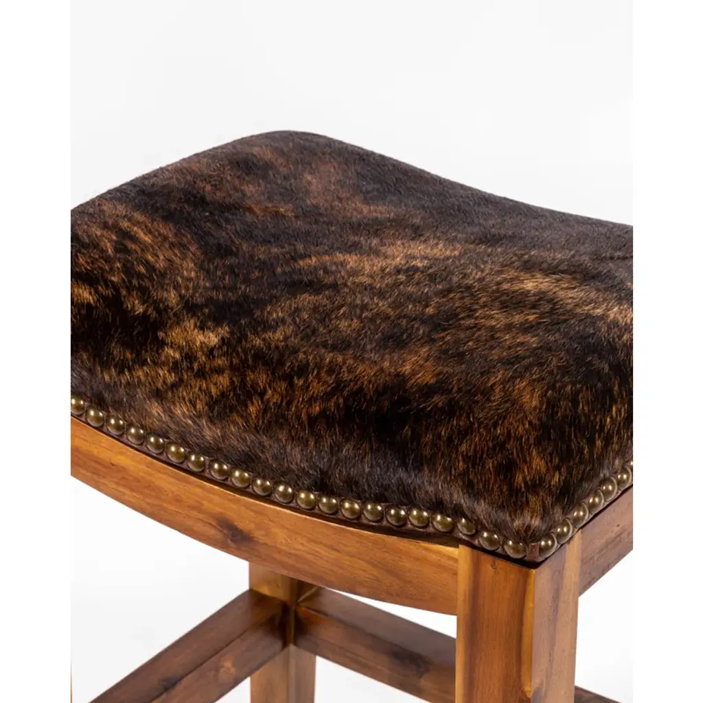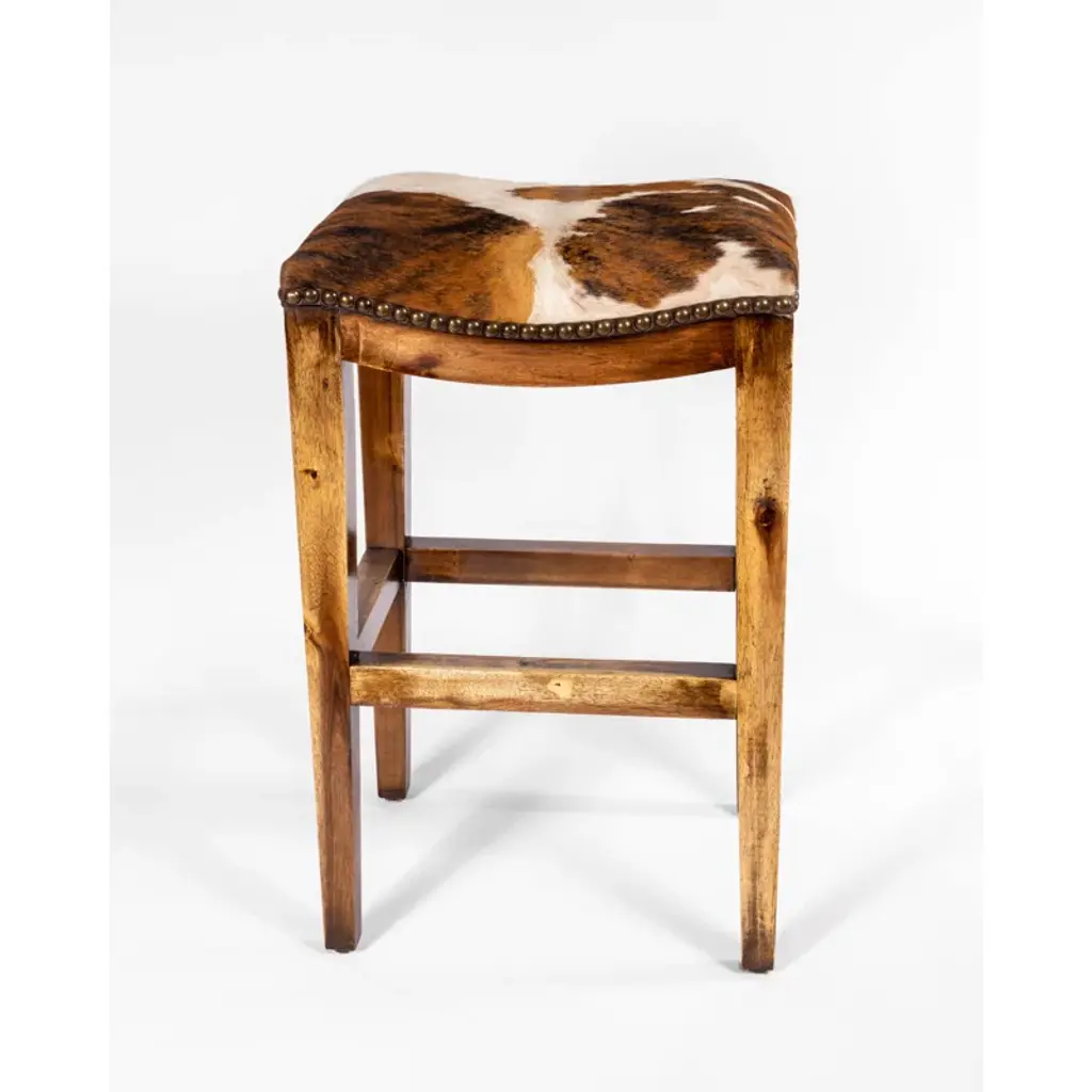 Handcrafted Luxury – Solid Wood Bar Stool with Embossed Genuine Leather Seat Introduce a touch of refined elegance to your space with this stunning bar stool, designed to be a lasting statement piece. Featuring a solid wood frame paired with an embossed genuine leather seat, this stool brings together artisanal craftsmanship and timeless style. The intricate tooled leather pattern enhances its luxurious appeal, while the antique brass nailhead trim provides a classic finishing touch. Why This Bar Stool Stands Out: Premium Materials: Built from solid wood for unmatched durability and upholstered with genuine leather for a rich, textured finish. Statement Design: The beautifully embossed leather adds depth and character, making it the perfect centerpiece for any bar, kitchen, or high-top table. Luxury Meets Comfort: A generously padded seat and supportive footrest ensure both style and relaxation. Versatile & Elegant: Blends effortlessly into rustic, transitional, and upscale interiors. Product Details: Materials: Solid Wood Frame, Embossed Genuine Leather Seat Finish: Warm Walnut with Antique Brass Nailhead Trim Style: Luxe, Rustic, Transitional Dimensions: [Add dimensions if available] Make a bold style statement with a bar stool that’s not just furniture, but a conversation piece. Built to last and designed to impress, it will elevate any space with its luxurious details.