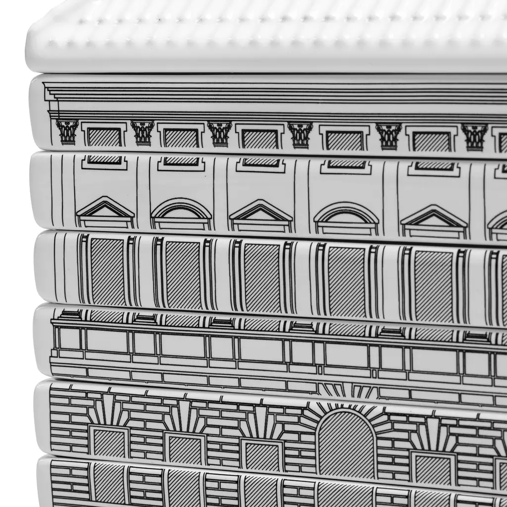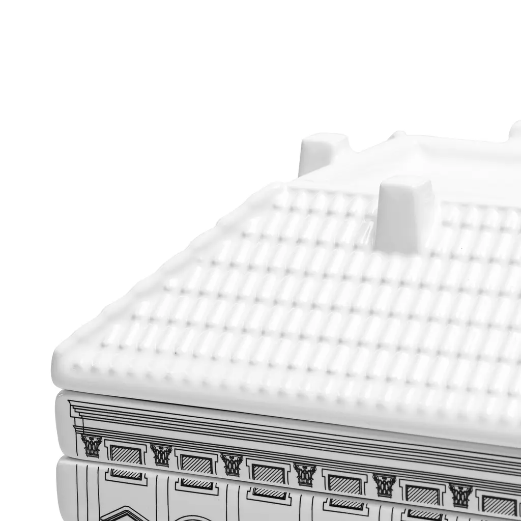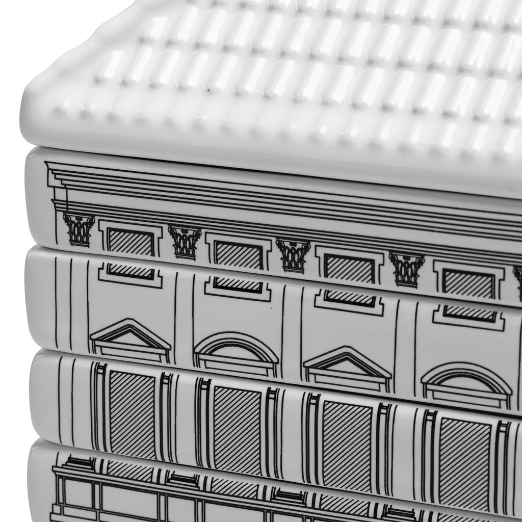 Among SELAB’s exciting functional products is The Palace Collection, a set of stackable plates, glasses, bowls and other serveware that resemble traditional Renaissance architecture. Conceived by designer Alessandro Zambelli, Palace serves as a functional and decorative storage solution that essentially hides dinnerware in plain sight — and saves space at the same time. Ten different “buildings” (built from stackable ceramic modules) can be purchased to complete the smart architectural dinner collection. Could dessert be any sweeter? Designer Alessandro Zambelli thinks so. Created for Selleti as a part of The Palace Collection, a series of stackable dinnerware that imitates Italian Renaissance architecture, her Palazzo Borghese Set includes 6 unique dessert plates that form an engaging “building” when not in use. Proudly display the clever dishes on your shelf, countertop, or as a centerpiece — and of course, you can eat off of them, too. The “roof” can even be used as serving bowl. This space-saving ceramic set is endlessly functional and microwave and dishwasher safe.