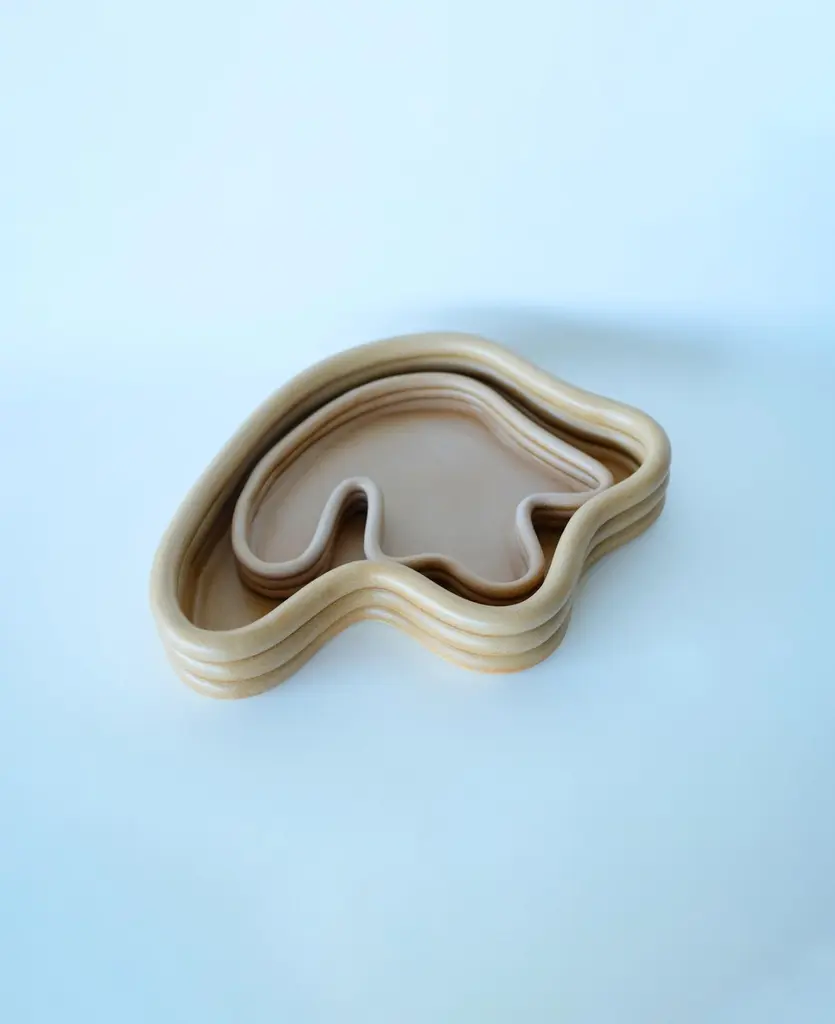 Set of 2 Mother and son table centerpieces by Sophie ParacheyDimensions Big: W 37 x D 32 x H 8 cmDimensions Small: W 28 x D 24 x H 3.5 cmMaterials: White stoneware, cream velvet glaze.Inspired by extended stays in Central America, Sophie Parachey’s work questions transformation, the antagonism between the ancestral and the modern, and our relationship to the living world. Sophie intentionally handcrafts her ceramic artwork in stoneware or handpicked clay. Each piece expresses itself with its curves, textures, and resonances. Rough or smooth, they embody a paradoxical realm. Unrefined and primitive forms,reminiscent of organic magma flow, blend with softer, delicate, and more subtle shapes. A new balance seems to emerge from this surprising combination.