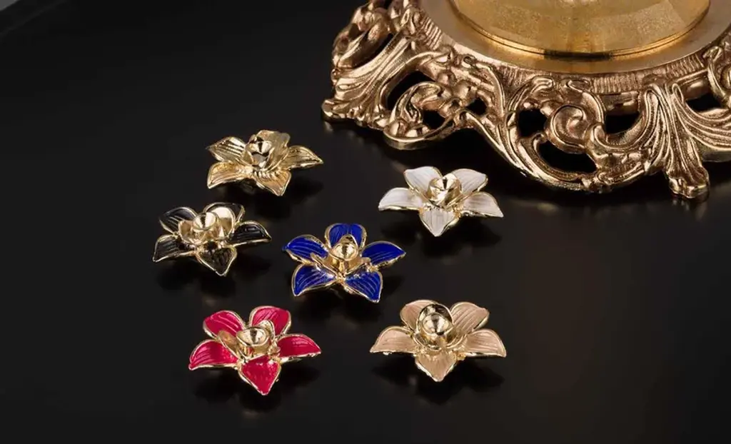 Finish: shiny gold 24K. Other finishes on request.Color: transparent with Sheen effect. Other colors on request.Details: All glass components are in transparent color and after decorated with gold leaf.This decoration is called Sheen and it is perceptible to the touch and visually.Sheen: Embellished with floral elements, in metal handmade and with silver welding.They are decorated in 24k gold finish.Sheen twin: The version without floral elements.