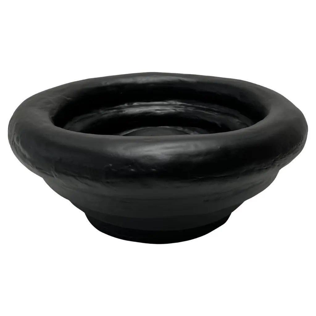 A captivating interplay of lights and shadows thanks to a splendid polished finish enhancing the total black hue, this small centerpiece will make a timeless decorative accent in any contemporary interior. Handcrafted of single-firing clay, it flaunts a round concave shape that will host any colorful flower arrangement.