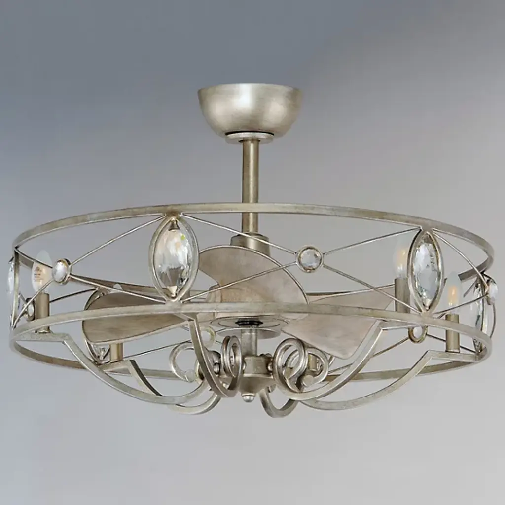 The Solitaire Smart Fandelier from Maxim Lighting brings timeless sophistication with a modern twist. Gracefully curved arms and a crown adorned with beveled crystal accents create a luxurious character, while candelabra bulbs illuminate each crystal from behind for a dazzling effect. Designed for both style and function, it features three reversible blades and a Wi-Fi-enabled control system that works with the included remote or smart home apps. Damp-listed and perfect for contemporary spaces, this fandelier is a glittering centerpiece for any room.