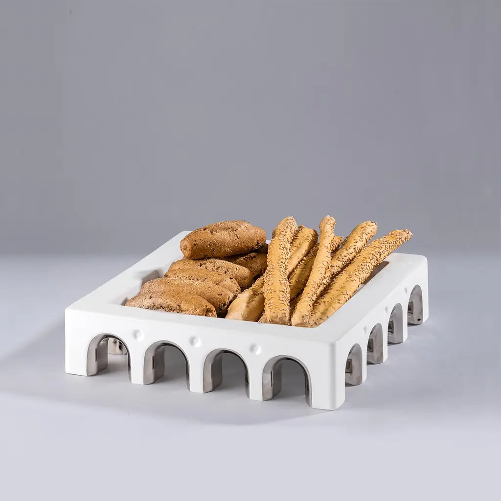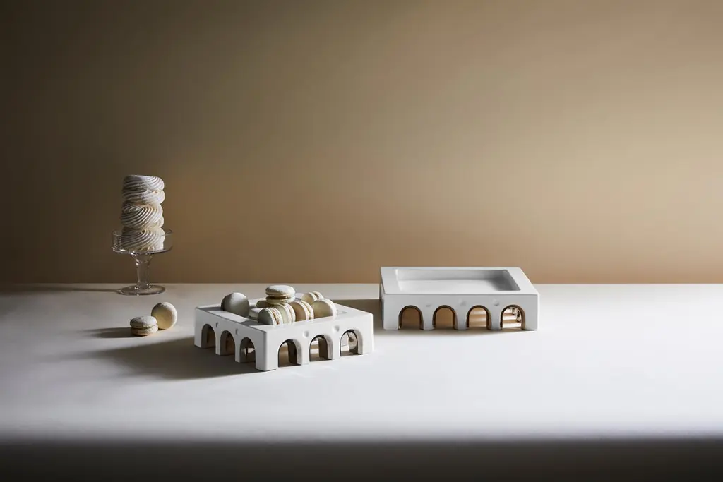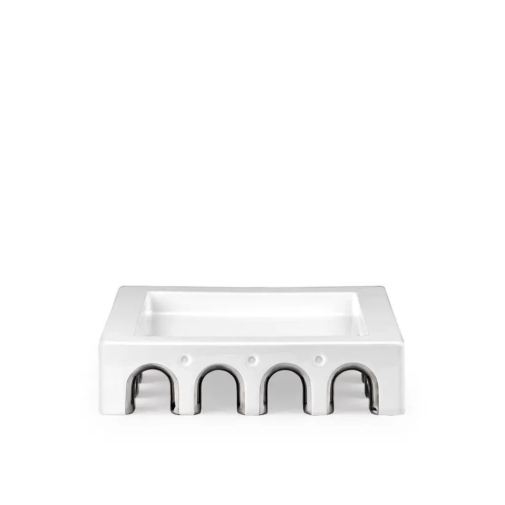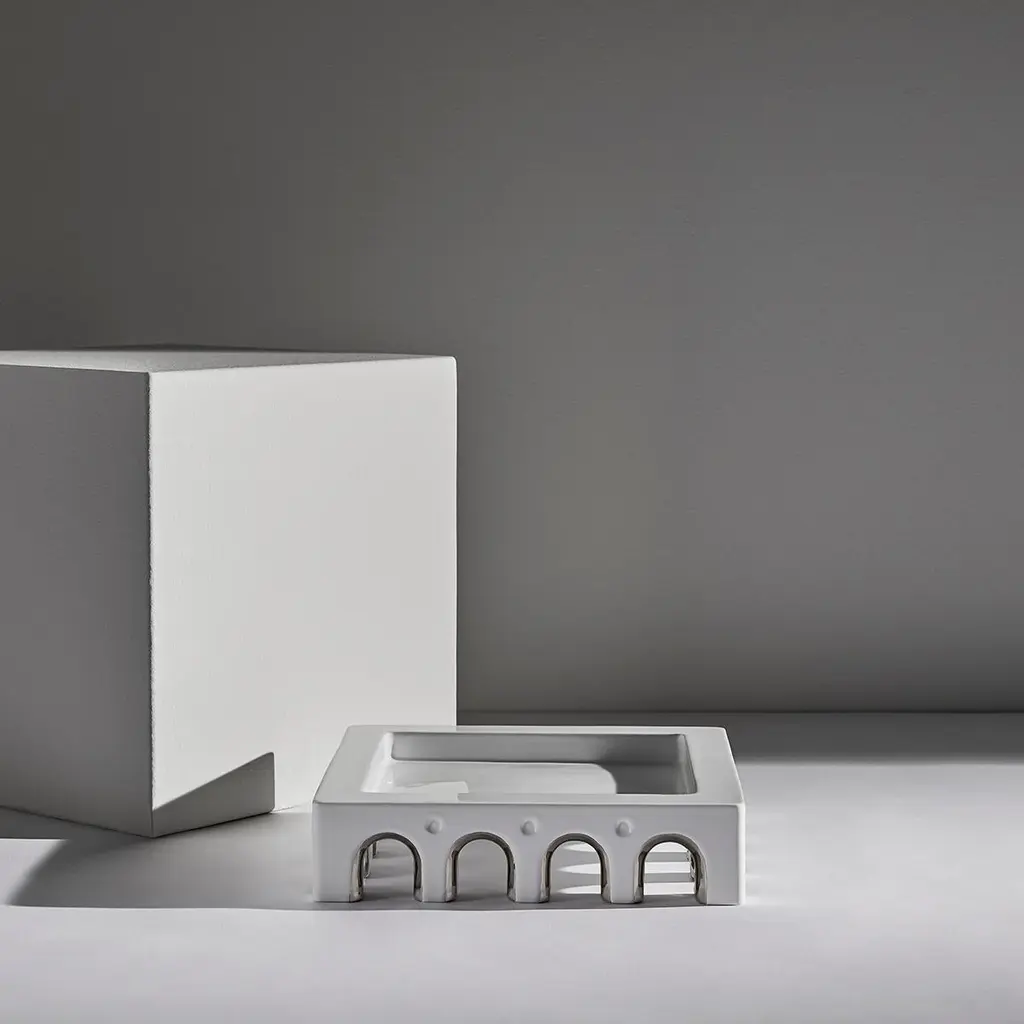 Sophia L centerpiece by LATOxLATO is a celebration of Italian architectural heritage, with its elegant silhouette reminiscent of a classical portico surrounding a piazza. This centerpiece is entirely handcrafted in Italy by the best artisans that make one piece at a time. It is made of white ceramic and boasts luxurious details in platinum. The natural, living material of which it is made of changes as it is being worked to give rise to those tiny irregularities that are the unmistakable mark of a product of highly skilled Italian craftsmanship. Elevating an everyday object to a work of art, Sophia L centerpiece can be displayed on a dining table, coffee table, or console both in traditional or modern interiors, where it will become an eye-catching decorative and functional addition to enrich any decor.