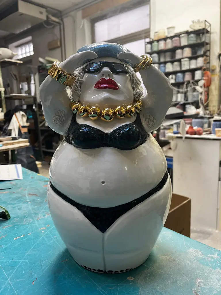 The piece is a unique representation created by our designer.The creations are completely made by hand.Ceramic and paint are water resistant.