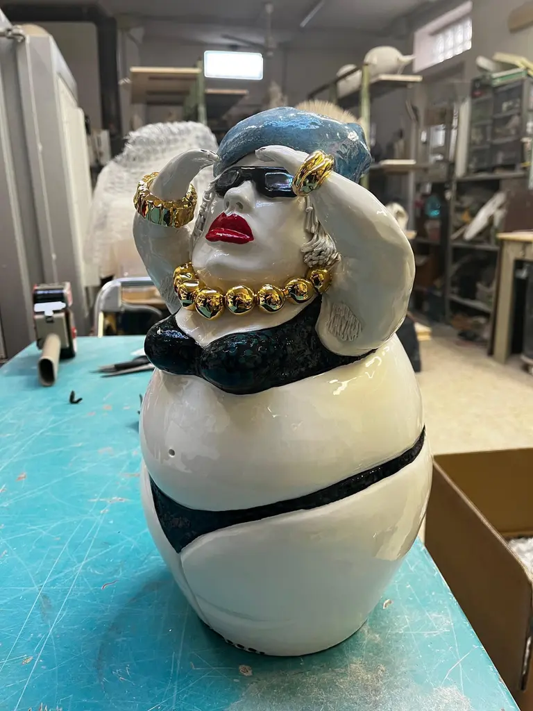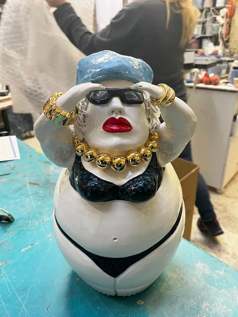 Sunbathing Lady Decorative Centerpiece, Handmade Italy, 2020, Hand-Crafted