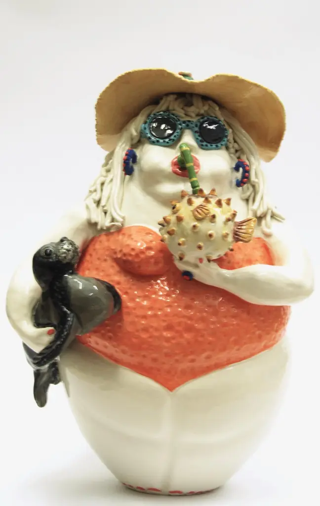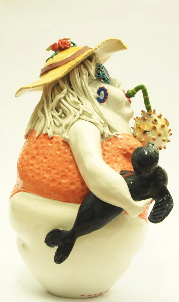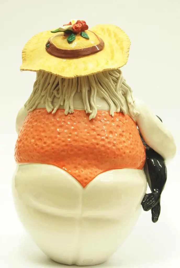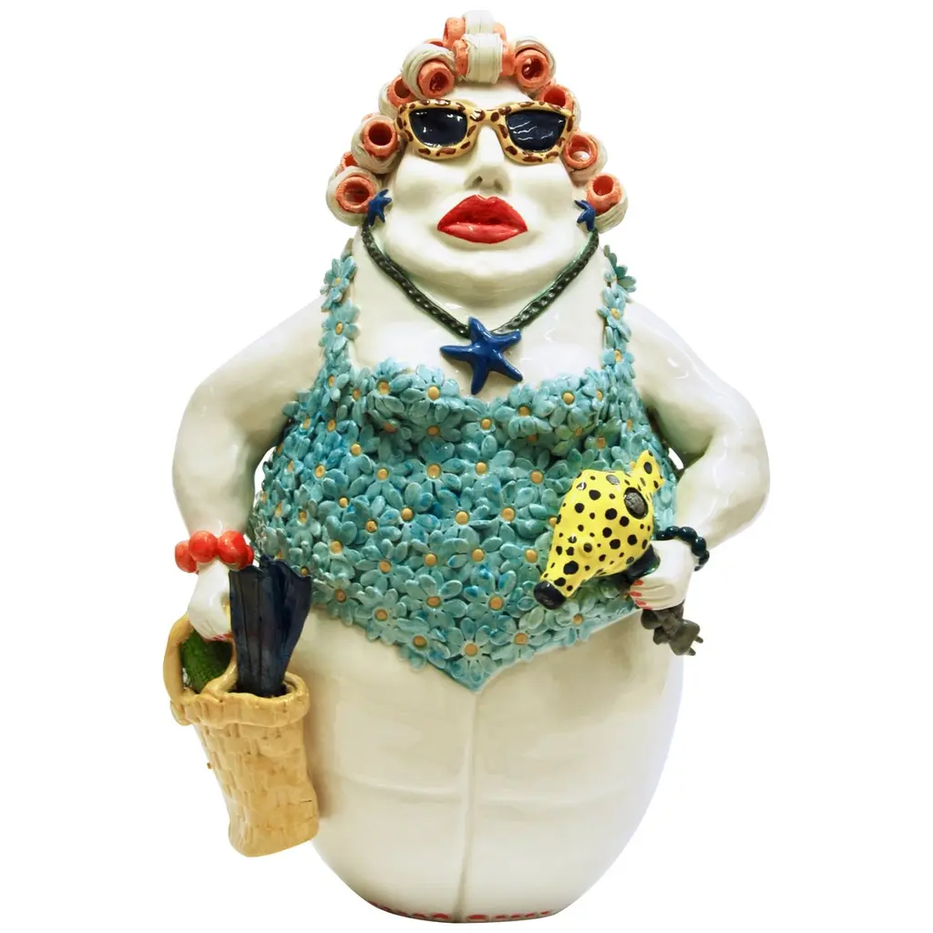 Sunbathing Seal Lady, Decorative Centerpiece Handmade Italy 2020, Hand-Crafted