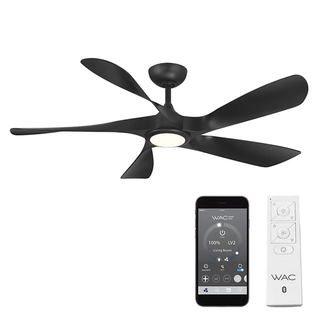 Sensual and visually intriguing, the Swirl Indoor/Outdoor Smart CCT LED Ceiling Fan from WAC Lighting stands out with its striking, geometric five-blade design. This Energy Star-rated fan adds a bold artistic statement to your space and delivers efficient and comfortable air circulation throughout your home. The uniquely sculpted blades create a dynamic visual effect while ensuring optimal airflow, making this fan both a high-performance fixture and a contemporary centerpiece for modern interiors.