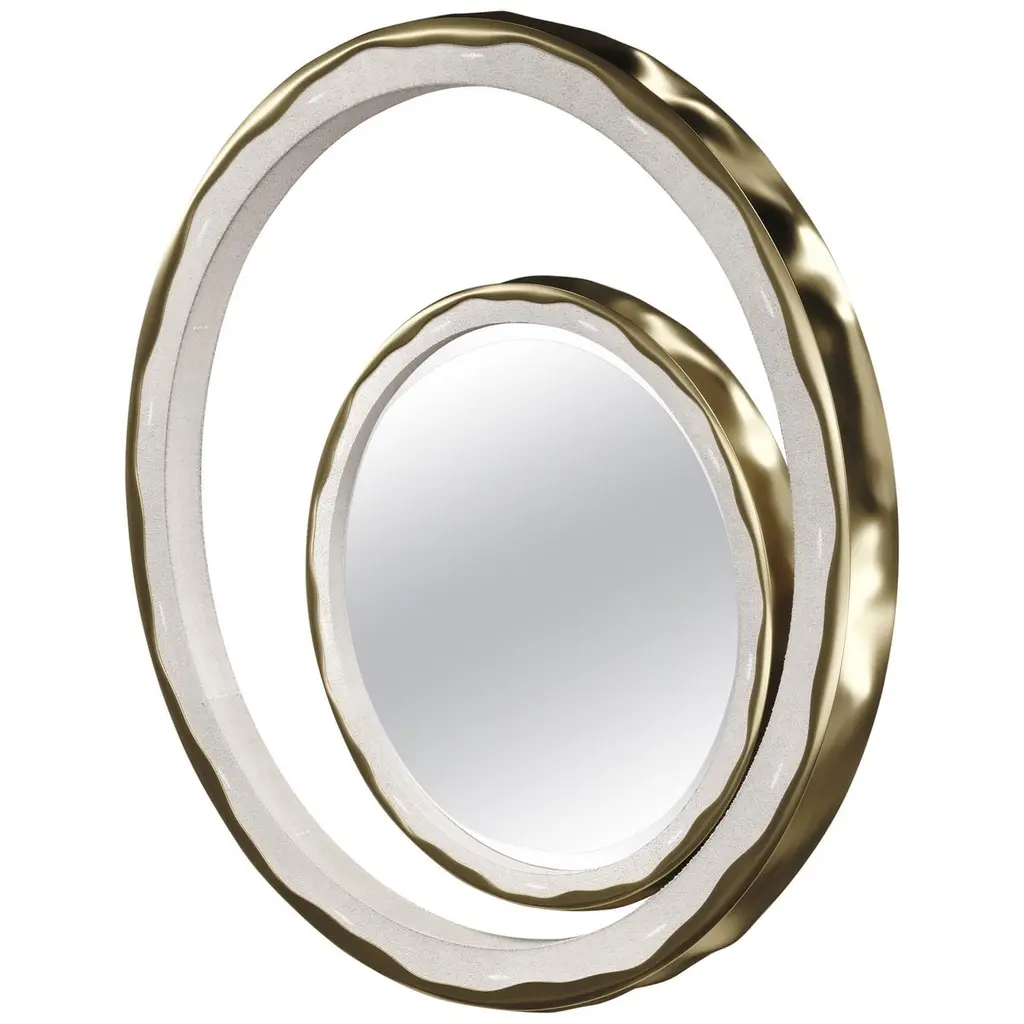 This round mirror features a silver and gold finish that will complement many decors throughout your home. This piece can be used on a wall or as part of a table centerpiece, creating a stylish atmosphere wherever it is on display.VerticalIndoor Setting
