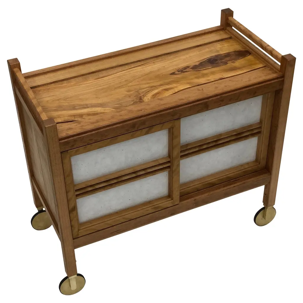 Handcrafted Elegance with a Playful TwistThe CE Bar, designed by Gisela Simas, is a striking fusion of Brazilian warmth and British refinement. A reflection of the designer’s multicultural background—born in Brazil and shaped by a decade in London—this piece revisits the classic drink trolley, an object that evolved from Victorian-era tea carts to mid-century bar staples.Handcrafted in Brazil, the CE Bar showcases Simas’ signature aesthetic: elegant, dynamic, and interactive. Its standout feature is a sleek tambour door that not only lends a distinctive visual identity but also invites a tactile, playful experience in the simple act of opening and closing.Perfect for modern entertaining, this bar trolley blends heritage design with contemporary flair, making it a sophisticated centerpiece for any interior.