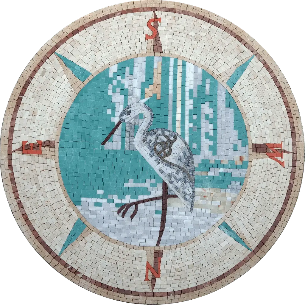 The Flamingo Bird Mosaic Compass Medallion - 122cm X 122cm (48" X48")
