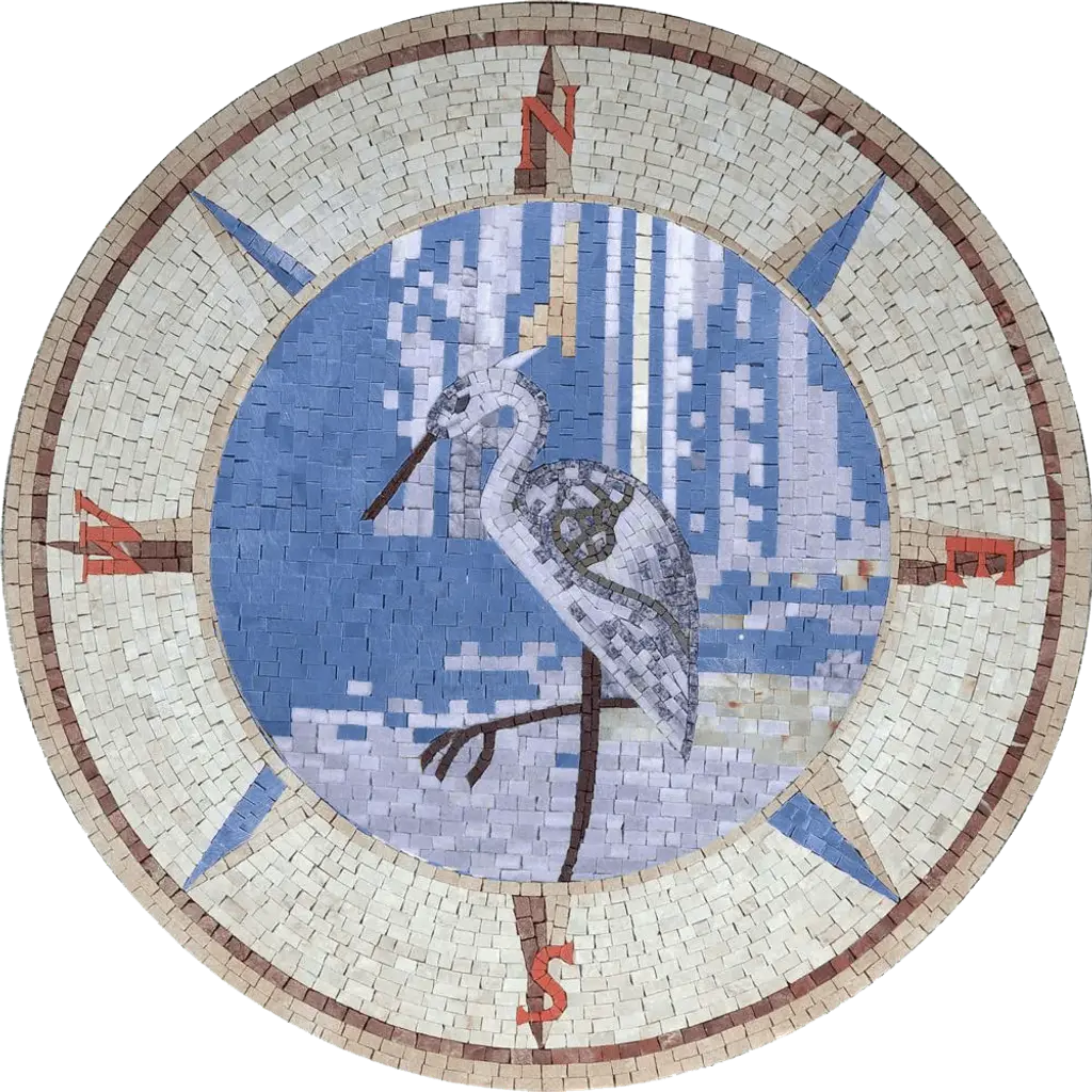 The Flamingo Bird Mosaic Compass Medallion - 90cm X 90cm (36" X36")