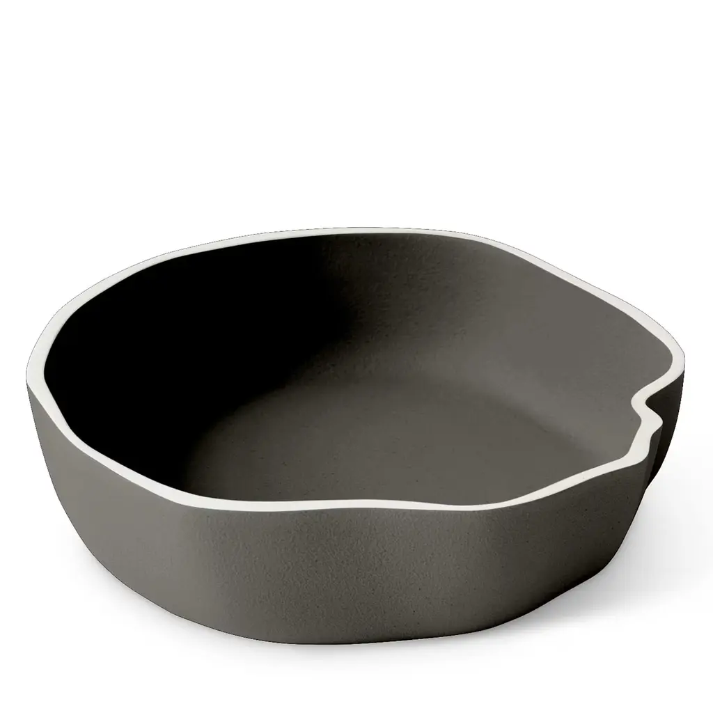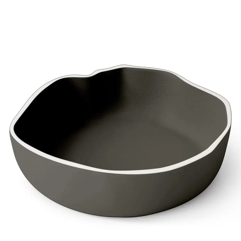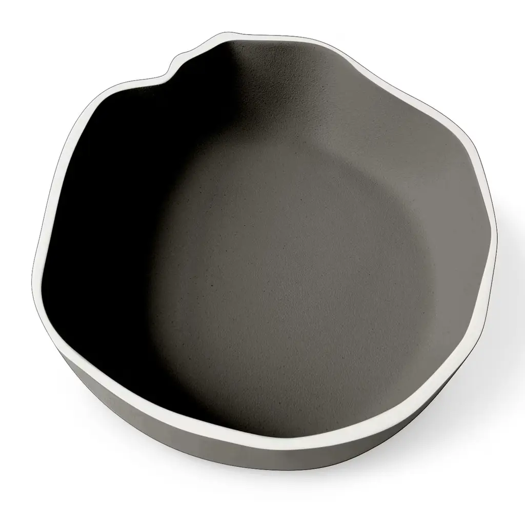 Magical is the language of nature, secret and sometimes imperceptible. The phenomenon of the tides is manifested in the variation of the landscape of our territory, feeling the force that nature exerts. The border is the main detail of this collection designed by Laura Pelosio, enhanced by the white color, it draws the outline of the centerpiece characterizing it with a sinuous and wavy line. This organic aspect makes it precious, emphasizing, even more, the value of craftsmanship. Smoke gray color.
