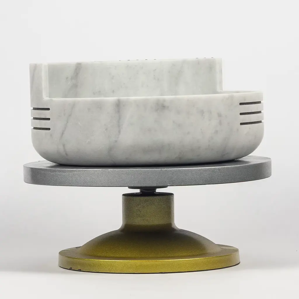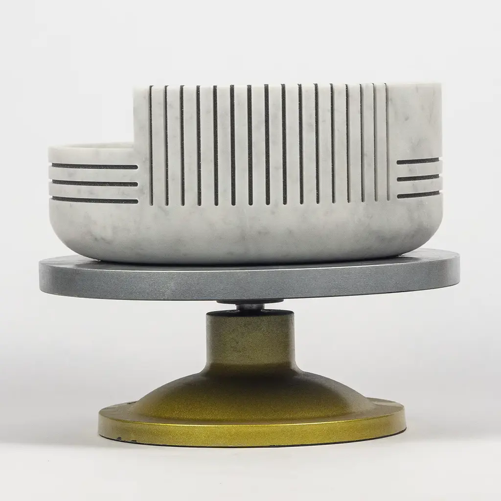 A new and unprecedented synergy between marble and diamond. The magic of a symbiosis. A series of three vases in Carrara marble with very regular geometric inlays - made by Marmi Sacco - in which the surfaces in DiamArt micro diamonds are inserted. Tratti, the name of the collection, are signs of the soul that remain over time. Please, contact the Concierge for further information.