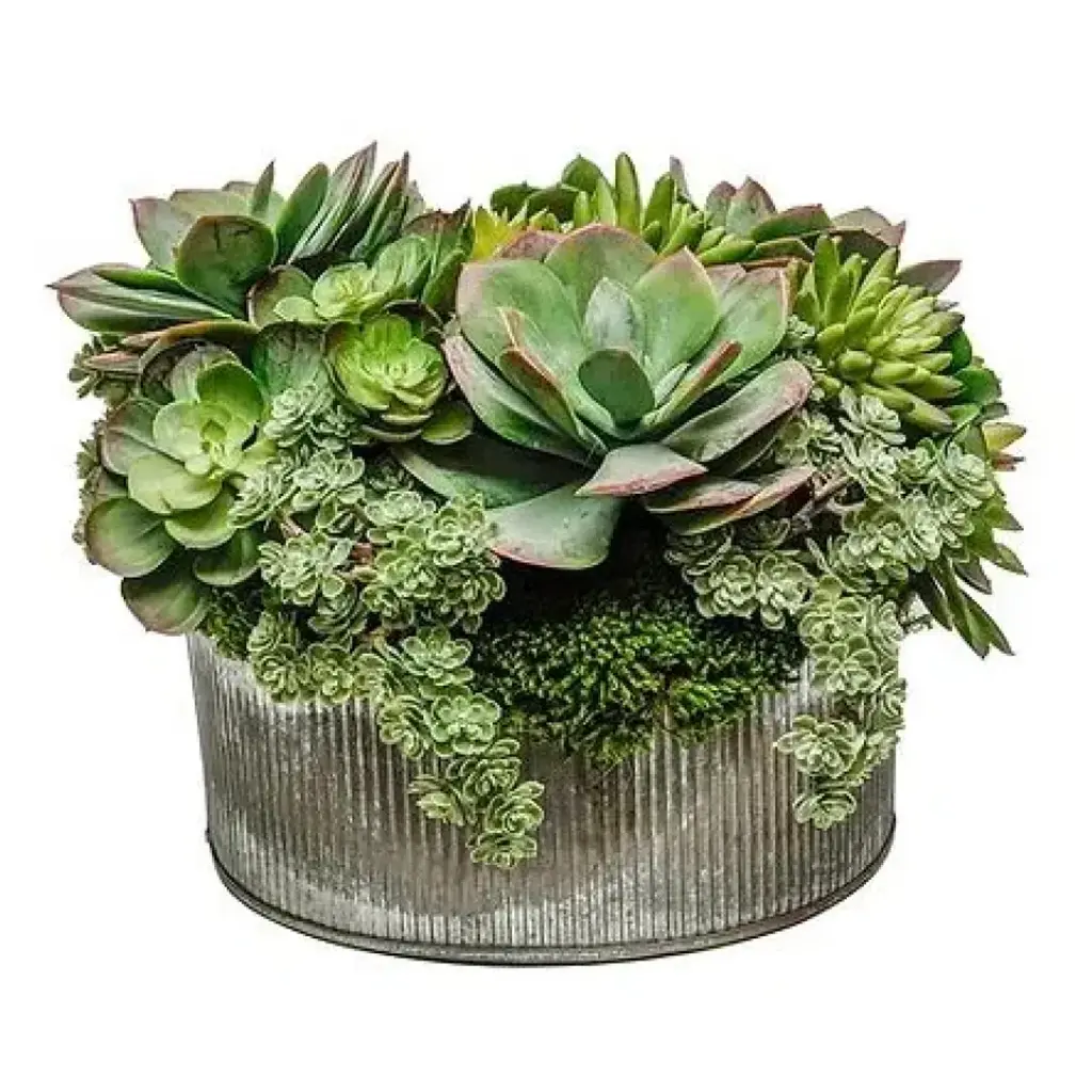 A Stunning Centerpiece Full Of Life-life Succulents And Sedum Varities. Deep Tones Of Green And Burgundy Add To Its Richness, Complementing The Dark Iron Planter With Antiqued Edge Accents. Centerpiece from the Yuma collection in Green And Burgundy finishA Stunning Centerpiece Full Of Life-life Succulents And Sedum Varities. Deep Tones Of Green And Burgundy Add To Its Richness, Complementing The Dark Iron Planter With Antiqued Edge Accents.Width: 15.00"Height: 13.00"Length: 14.00"Weight: 7.00 lb