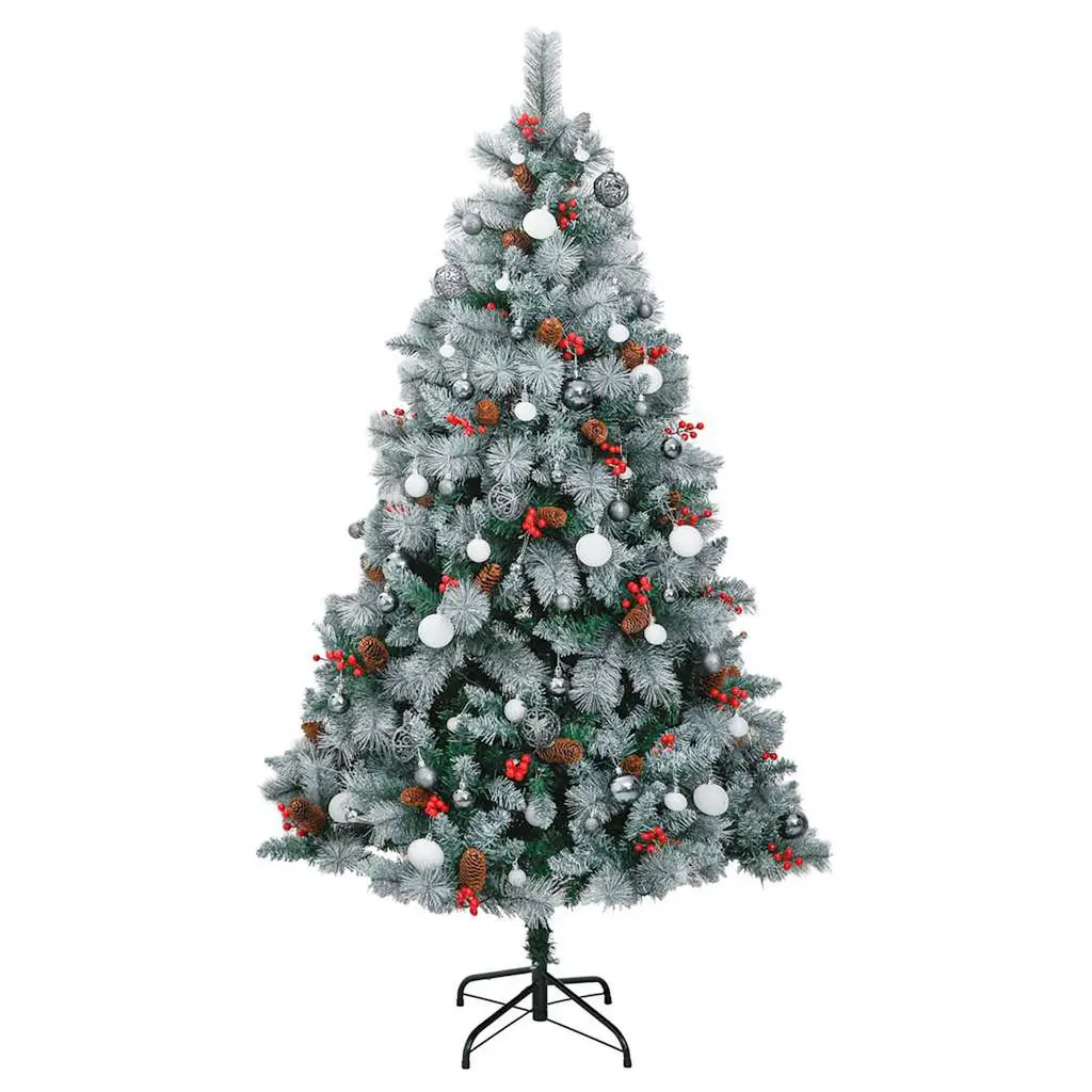 Vidaxl Artificial Hinged Christmas Tree Green And White Pvc And Metal