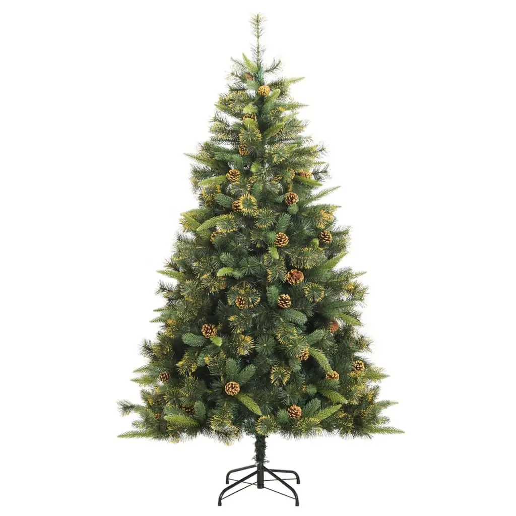 This stunning Artificial Hinged Christmas Tree reaches an impressive 82.7 in, bringing a festive vibe to your space with its green color and natural finish. It's perfect for living rooms, balconies, or patios, making it an ideal centerpiece for holiday gatherings, family get-togethers, or those cozy nights by the twinkling lights. Collapsible Design: The tree folds up easily for quick storage after the holidays, so you can tuck it away neatly without any fuss.Durable Materials: Made from quality PVC and PE, this tree is UV resistant, keeping it looking fabulous throughout the festive season, whether indoors or outdoors.Realistic Appearance: Decorated with cones, it mimics a real fir tree, boosting the holiday mood and adding beauty to your seasonal decor.Versatile Use: Suitable for both indoor and outdoor, it fits lovely in various spots like your living room, balcony or patio, letting you celebrate the holidays anywhere you fancy.Functional Assembly: Easy to put together as per the manufacturer's instructions, making it a straightforward task for anyone, even if you're new to holiday decorating.
