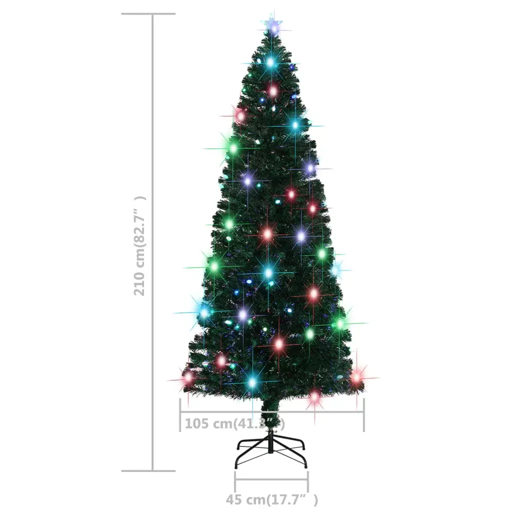 This beautifully crafted artificial pre-lit Christmas tree will form the striking centerpiece of your Christmas decorations.Resembling an authentic texture, this artificial Christmas tree is characterized by lifelike branches and mimicked snow-covered tips. The Christmas tree is equipped with 2 ways of lighting: LED and fiber optic. And the star-shaped LED light on the top of the tree creates the very right atmosphere for the festival. Additionally, featuring lightweight, weather resistant and durable, the Christmas tree can be used every year, making it a very economical choice compared to a real tree. It is suitable for both indoors and sheltered outdoors. The Christmas tree is easy to assemble as it has a simple plug-in system.Create a unique Christmas atmosphere in your home! Delivery also includes a stable steel stand and lights.