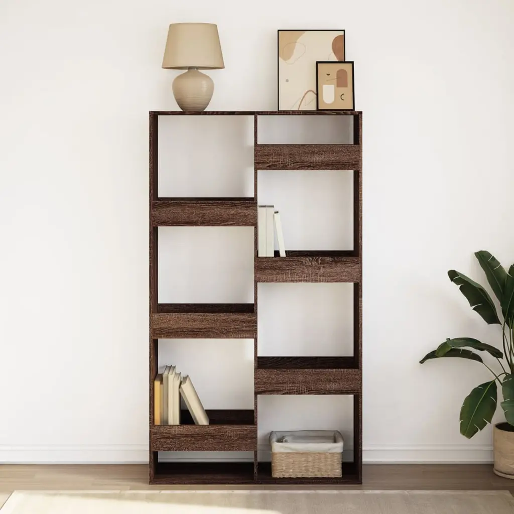 This lovely bookcase stands at 68.9 in tall and 39.4 in wide. It's designed to give you plenty of storage and display options for your books and decorative items. Made from strong engineered wood, it has a smooth brown oak finish that brings warmth to any living space or office, making it a great addition to your decor while ensuring it looks great and stays practical. Loads of Storage Space: With 8 shelves, this bookcase has loads of room for books, trinkets, or collectibles. Its generous design lets you display your treasures beautifully.Modern Look: The simple brown oak finish gives it a contemporary style that suits various interiors, making it the perfect centerpiece for living rooms, offices, or reading corners.Built to Last: Made with high-quality engineered wood, this bookcase offers solid stability and durability needed for everyday use, keeping your collection safe and neatly arranged.Multi-Functional: More than just a bookcase, it can also serve as a room divider, creating defined spaces in larger areas while showing off your belongings in style.Easy to Maintain: The matte finish makes cleaning a breeze—just wipe it down with a damp cloth, so it always looks spick and span without needing harsh cleaners.