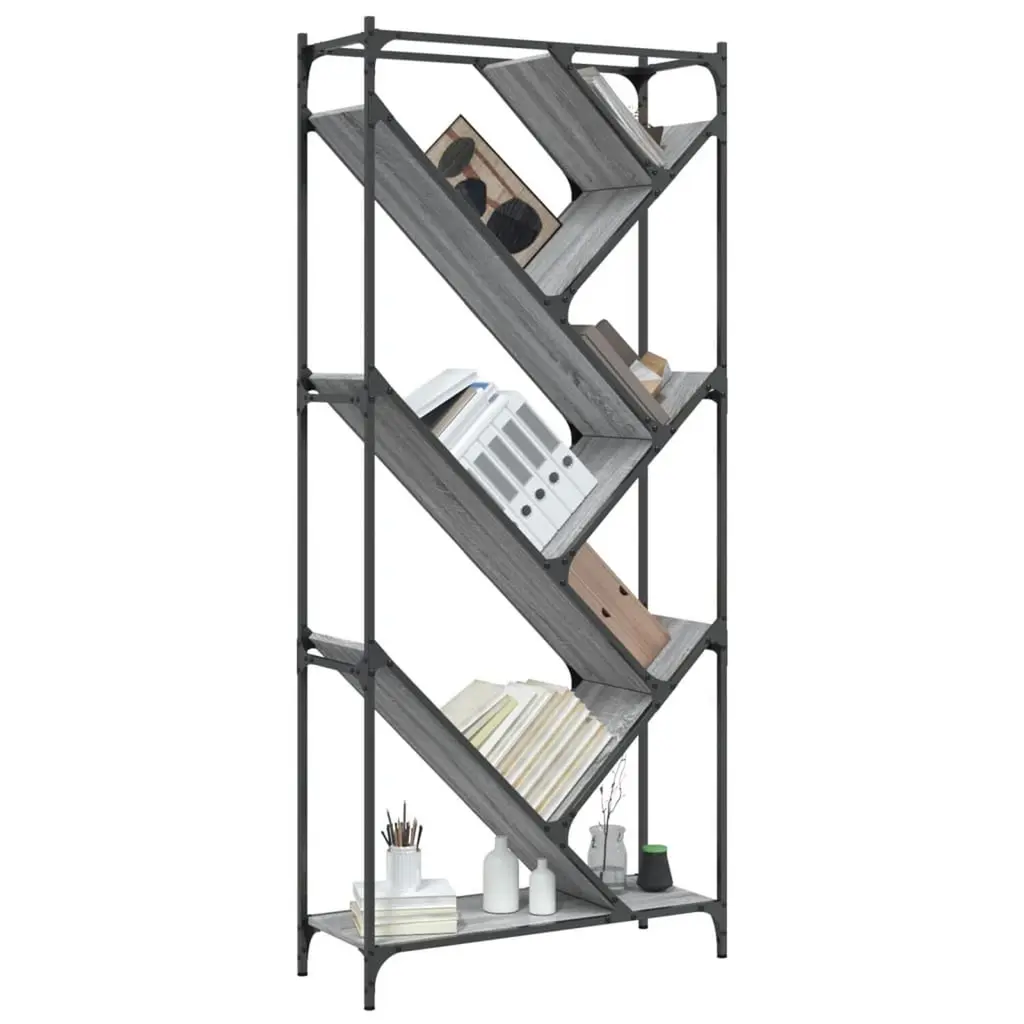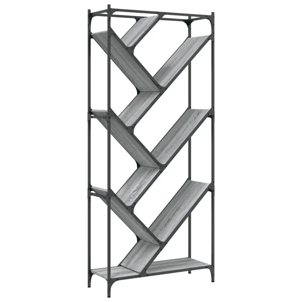 Vidaxl Bookcase Grey Sonoma Engineered Wood, Metal 31.1 X 11.8 X 70.9 In