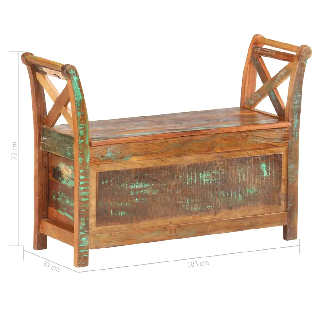 This hall bench is both stylish and practical, a must-have for any entryway or living room. Made from solid reclaimed wood, it brings warmth to your space while offering plenty of storage for shoes, bags, or seasonal items. Ample Storage: Loads of room for all your bits and bobs, keeping your hallway tidy. Decorative Inlays: Fabulous crafted decorative bits add charm and character. Versatile Usage: Can be used anywhere, in the hallway or even as a comfy seat in the living room. Quality Construction: Made from solid reclaimed wood, so it's sturdy and eco-friendly. Rustic Style: Each piece has its unique pattern, making it a perfect centerpiece for your home.