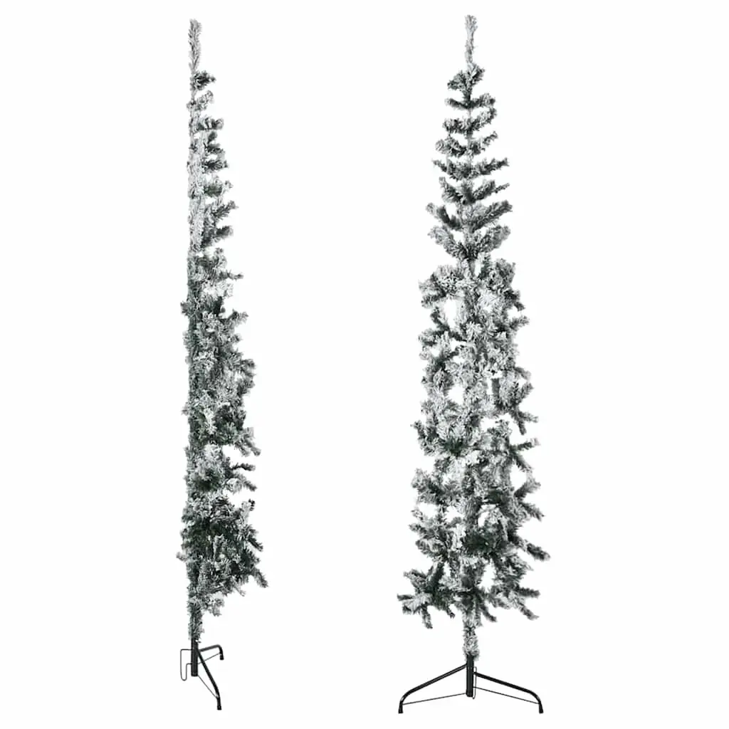 Vidaxl Slim Artificial Half Christmas Tree Green And White Pvc, Steel