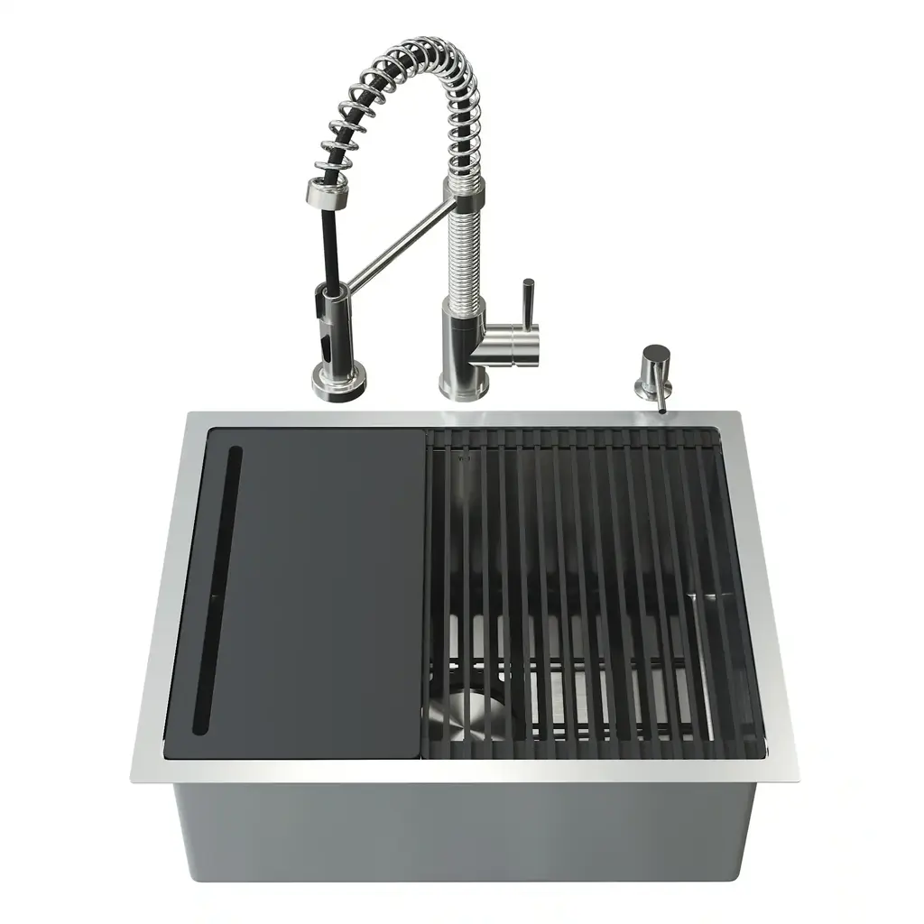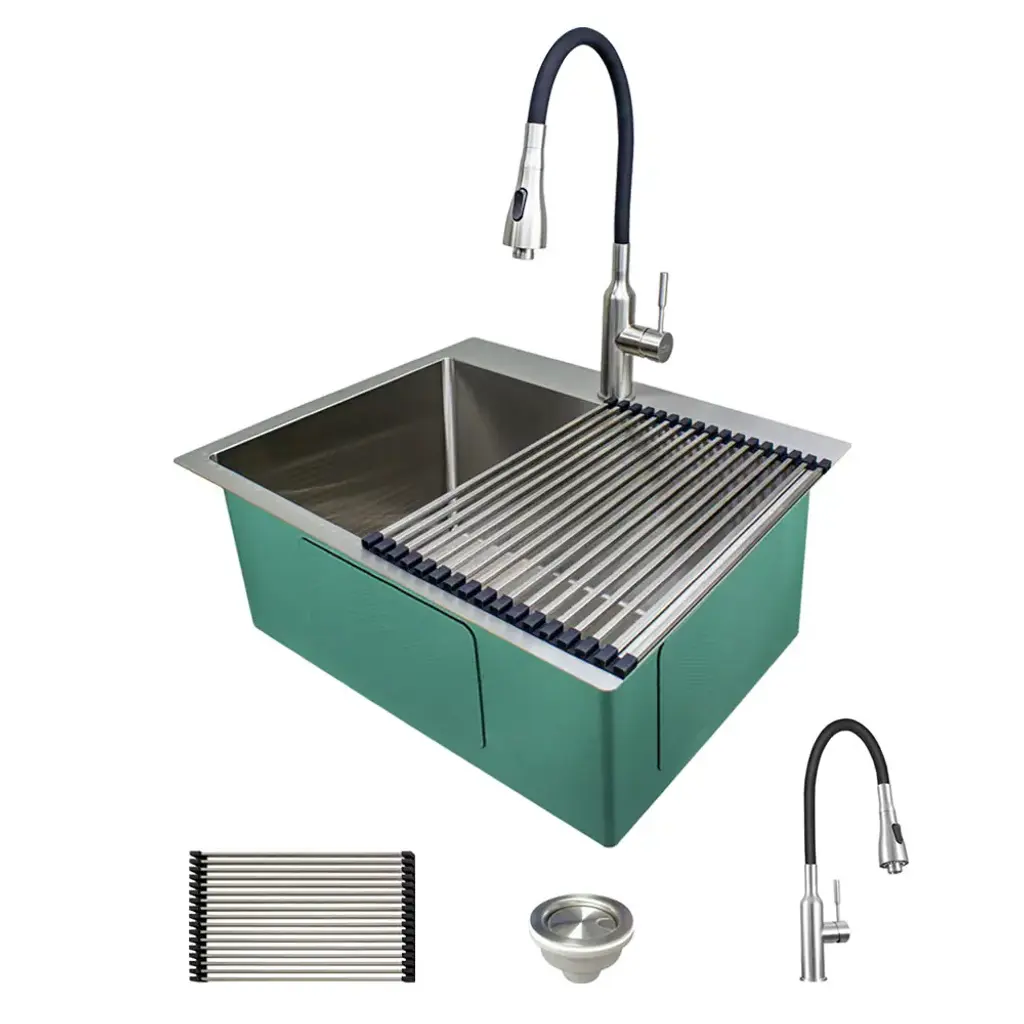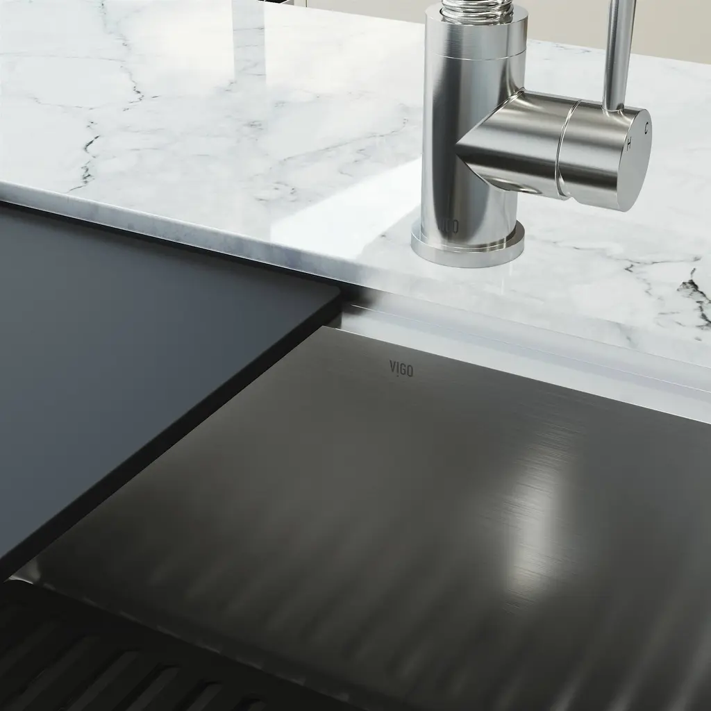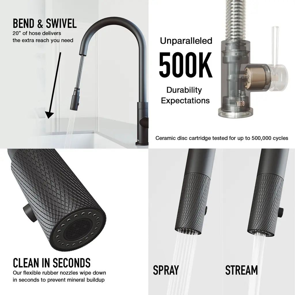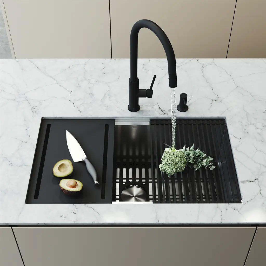 Transform your kitchen with the sleek functionality of the Mercer 33 in. Stainless Steel Undermount Kitchen Sink paired with the Bristol Dual-Action Single-Handle Pull-Down Sprayer Faucet and matching Soap Dispenser. Crafted from premium stainless steel, this set brings bold design, exceptional durability, and versatile performance into one complete package. The Bristol faucet features dual-action functionality, allowing effortless switching between a strong spray for heavy-duty cleaning and a soft stream for everyday use. Its pull-down sprayer offers extended reach, while the single-handle design ensures smooth water control. Built for lasting beauty, the matte black finish resists fingerprints, water spots, and scratches, keeping your kitchen looking polished with minimal effort. The Mercer sink offers a generous workspace in a sleek undermount design, providing a seamless transition from countertop to basin. Included accessories - a silicone sink grid, rolling dry rack, drain cover, strainer, and cutting board - add even more convenience and functionality, making everyday tasks simpler and more organized. Designed for the modern kitchen, the Mercer and Bristol set combines style, strength, and smart performance - a perfect centerpiece built to last.Features: Measurements: Details: Certifications&Warranty: