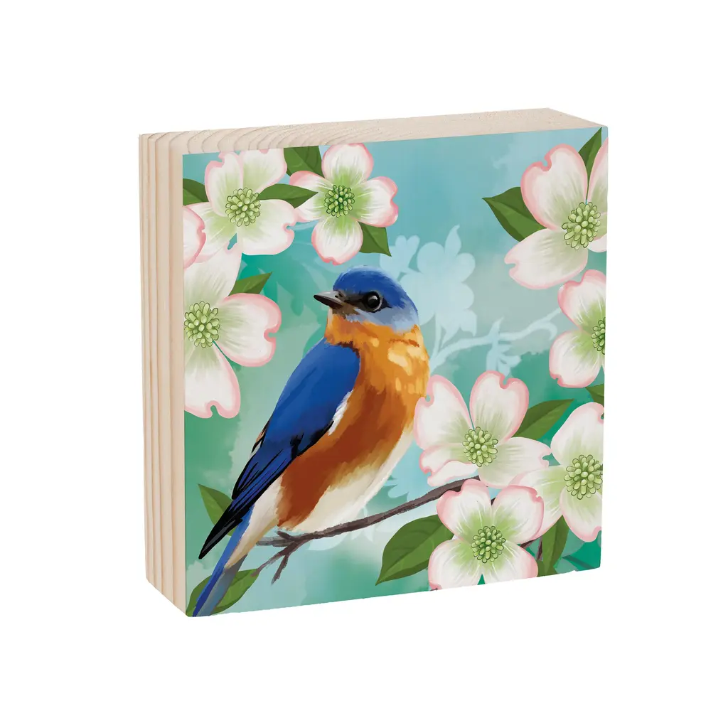 What She Shed Blue Bird Sign Wood Block, 6"x6"